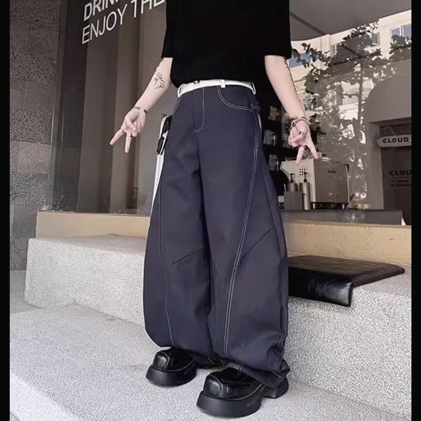 カーブシルエットステッチデニムウエストバイカラーワイドパンツ(ruf_02121)