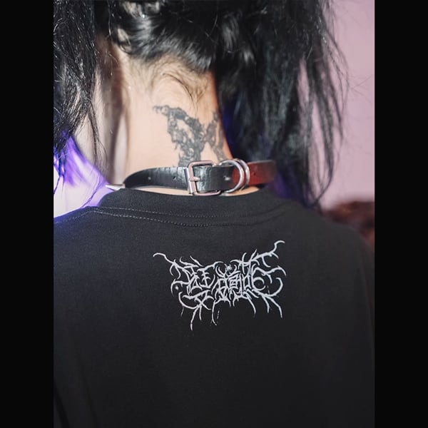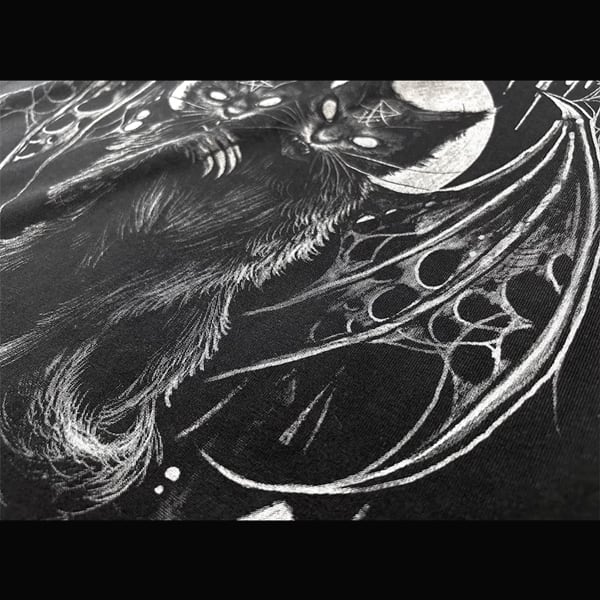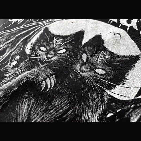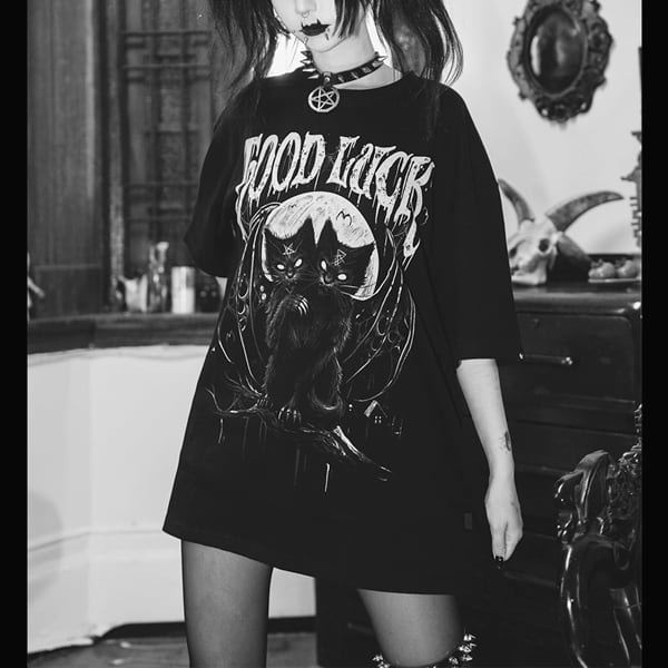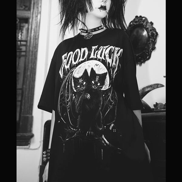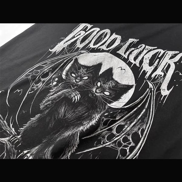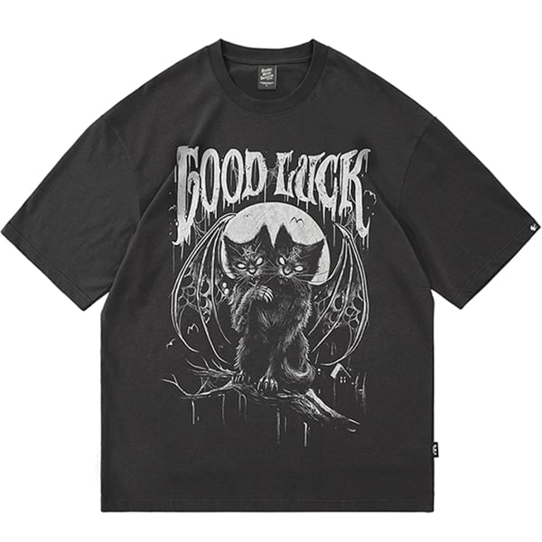 ツインヘッドデビルキャットグラフィックショートスリーブメタルカットソー(ruf_02293)