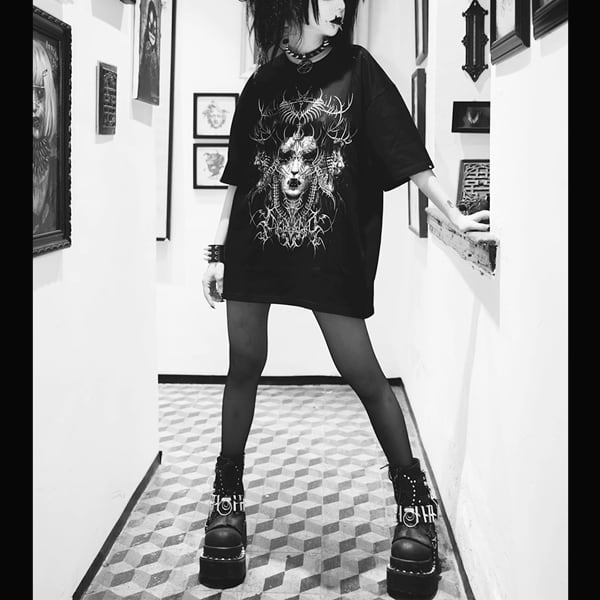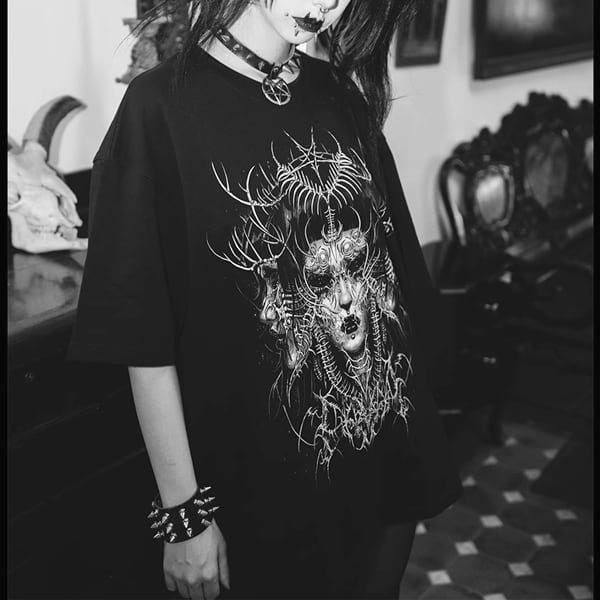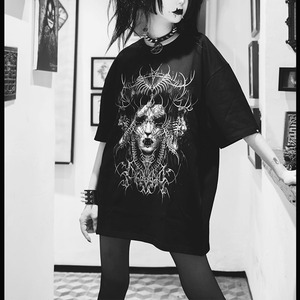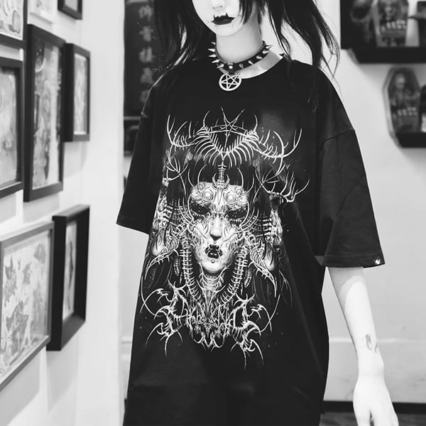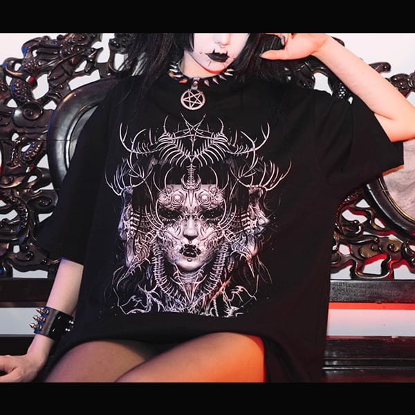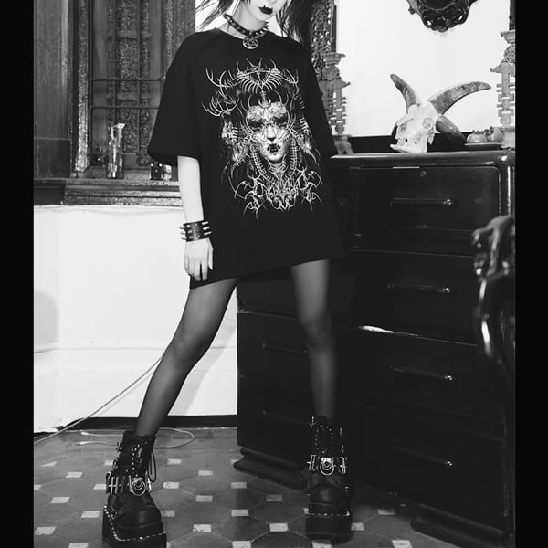 スケルトンフェイスクイーンショートスリーブメタルカットソー(ruf_02294)