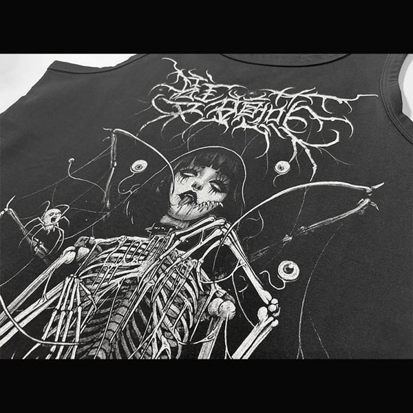 スケルトンレディカオスグラフィックメタルノースリーブカットソー(ruf_02296)