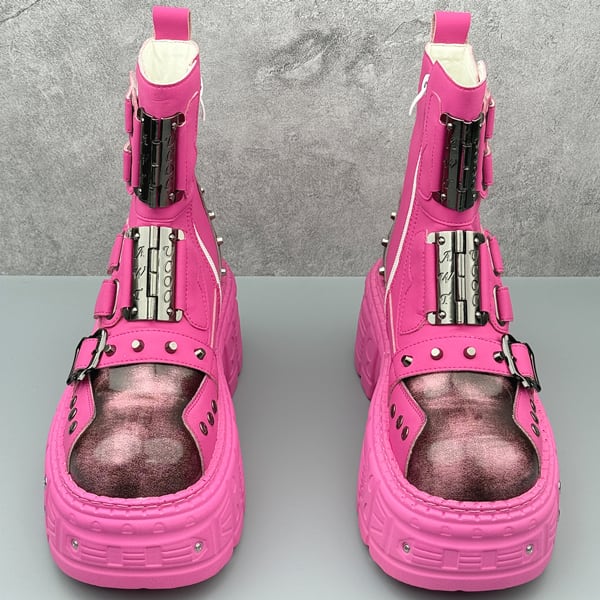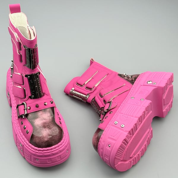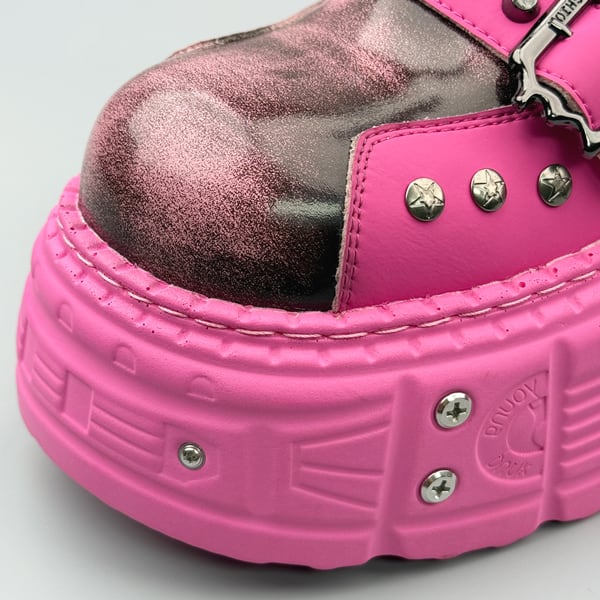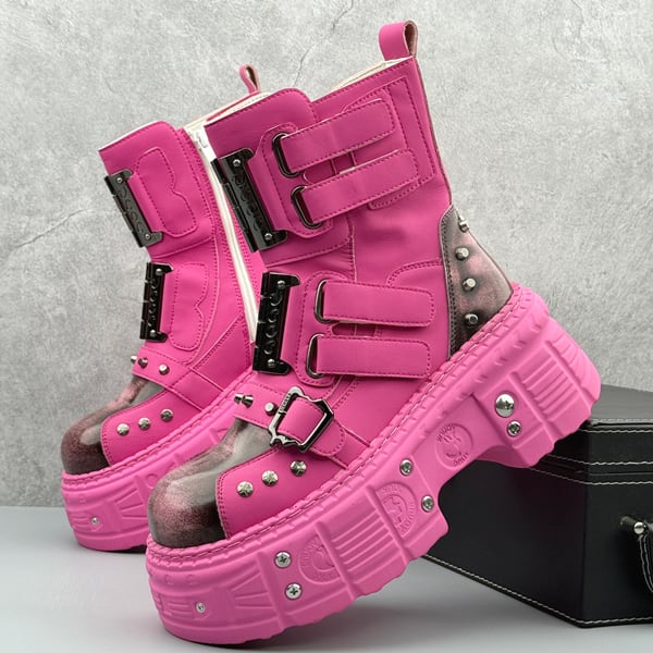 メタルスタッズベルクロサイドジップボリュームソールピンクブーツ(ruf_02339)