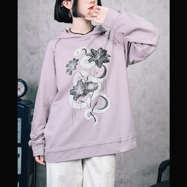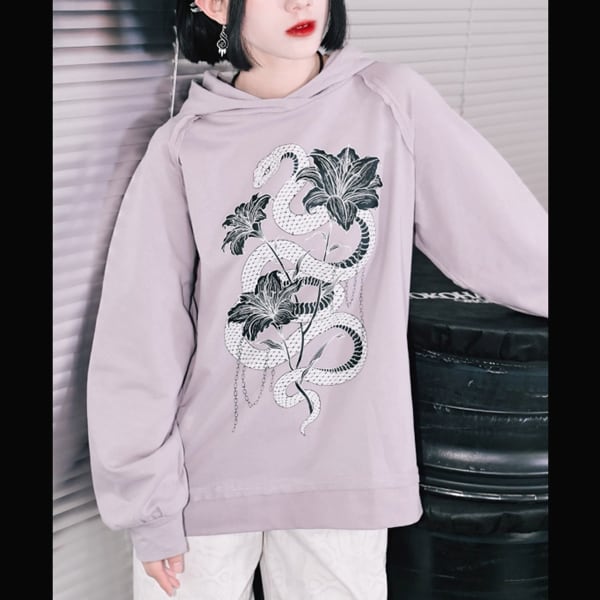 スネークフラワーグラフィックフーディ―プルオーバー(ruf_02394)