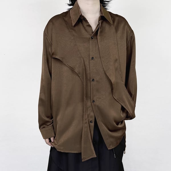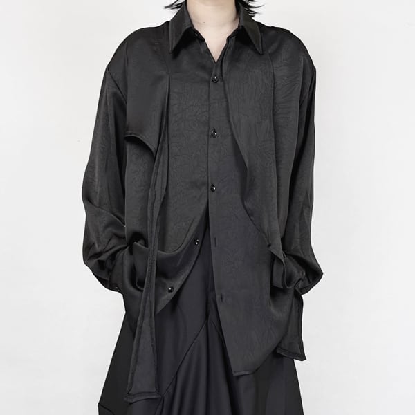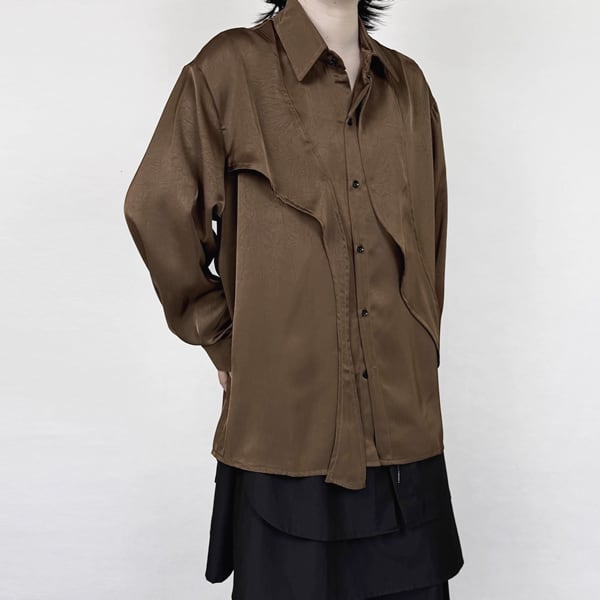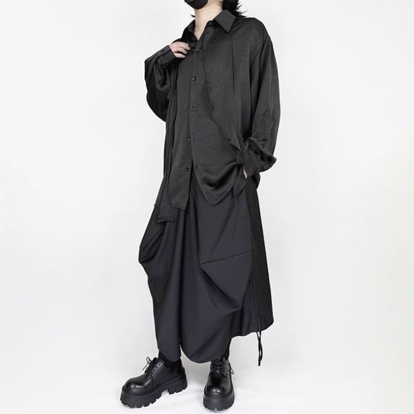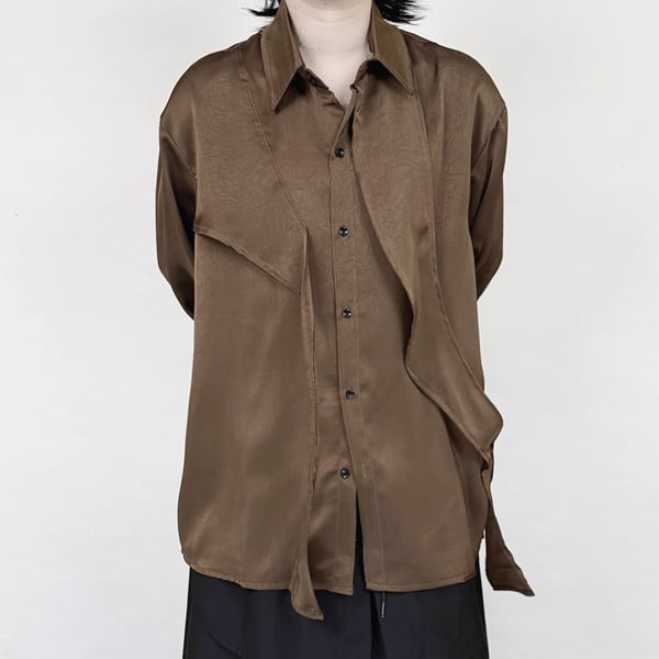 アシンメトリードレープロングスリーブシャツ(2カラーあり)(ruf_02423)