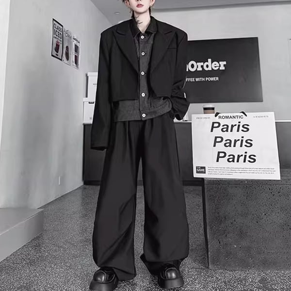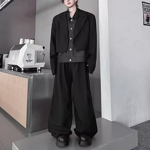フェイクレイヤードジャケットセットアップツーピースブラックパンツ(ruf_02432)