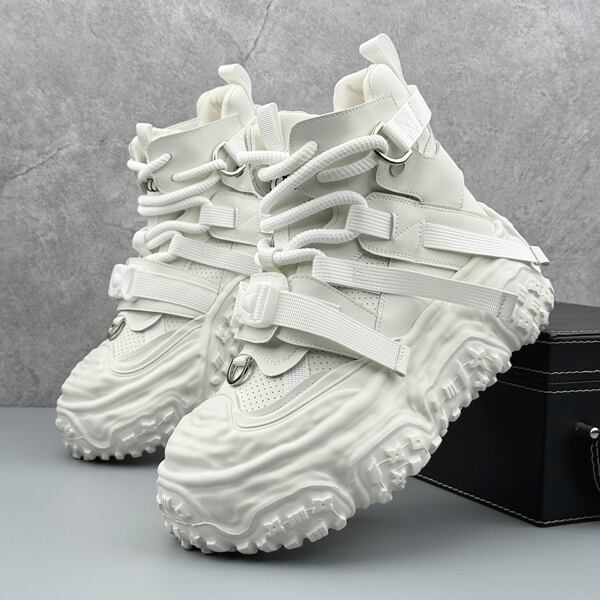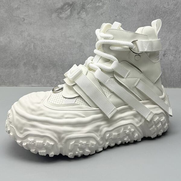 ボリュームクラックソールレースアップハイカットオールホワイトストラップシューズ(ruf_02444)