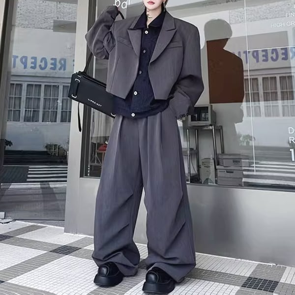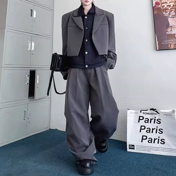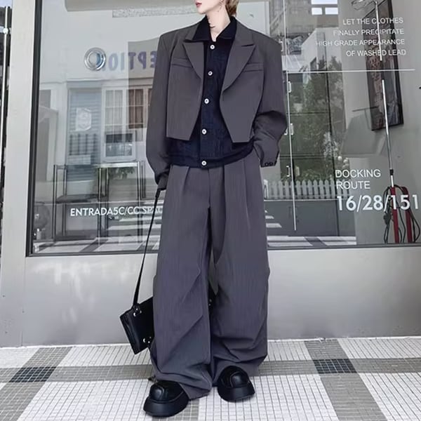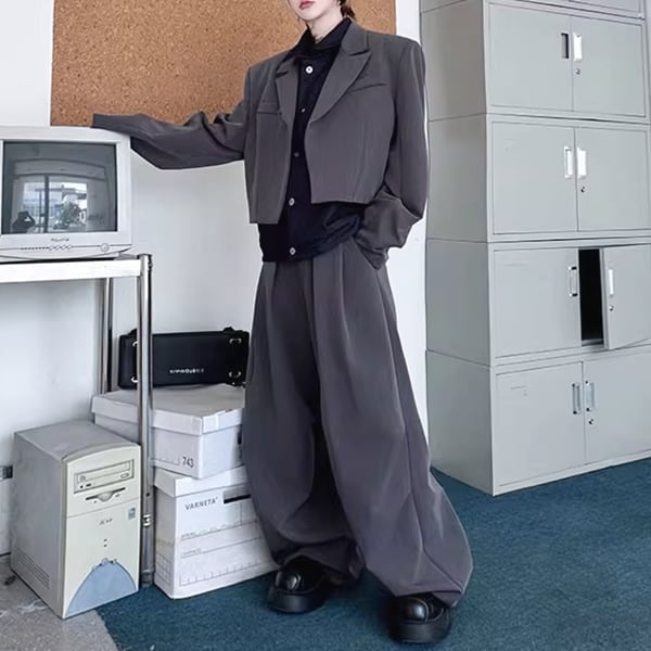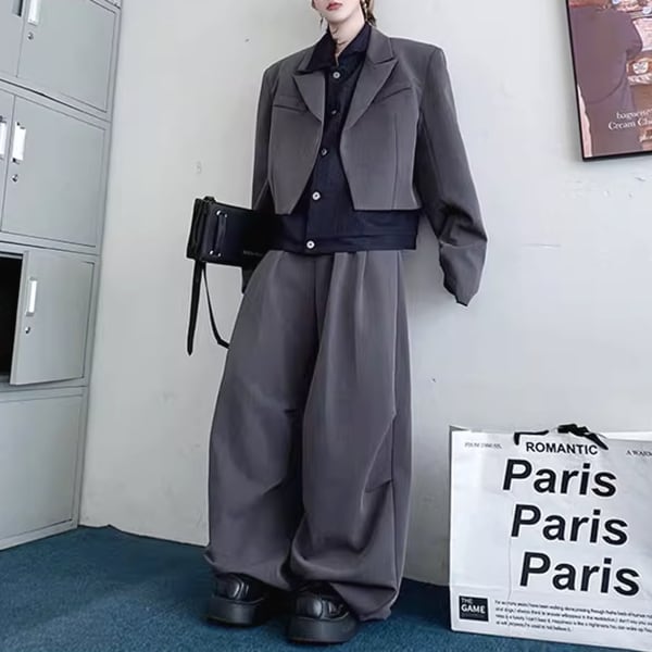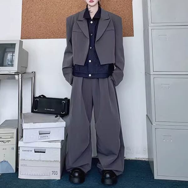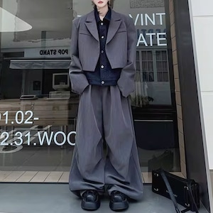 フェイクレイヤードジャケットセットアップツーピースグレーパンツ(ruf_02445)