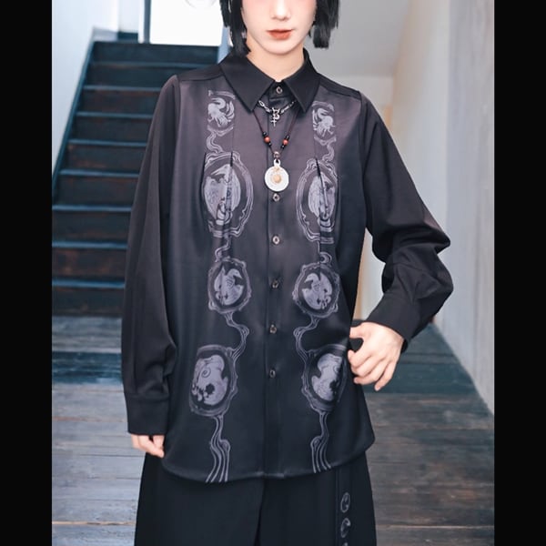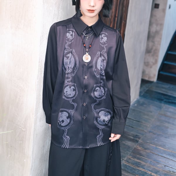 金烏パターングラフィックロングスリーブシャツ(ruf_02453)