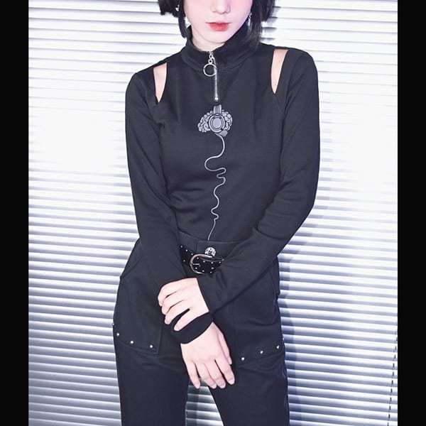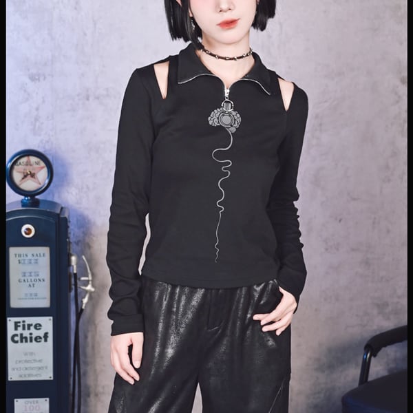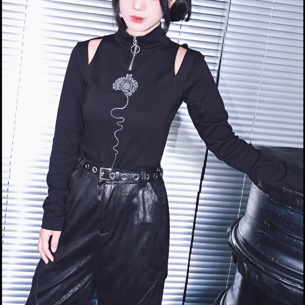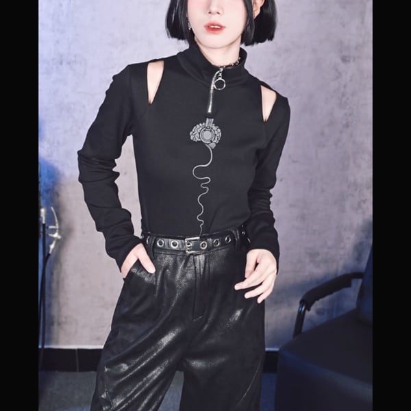 オフショルスリットハーフジップハイネックカットソー(ruf_02455)