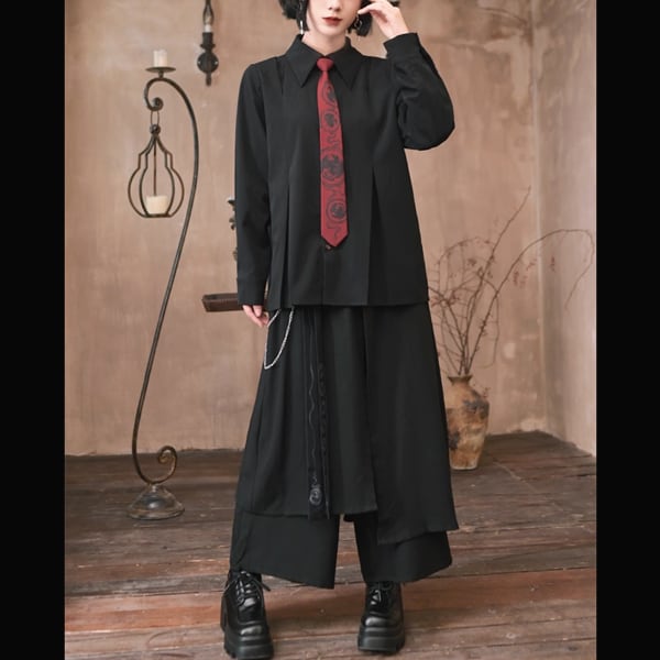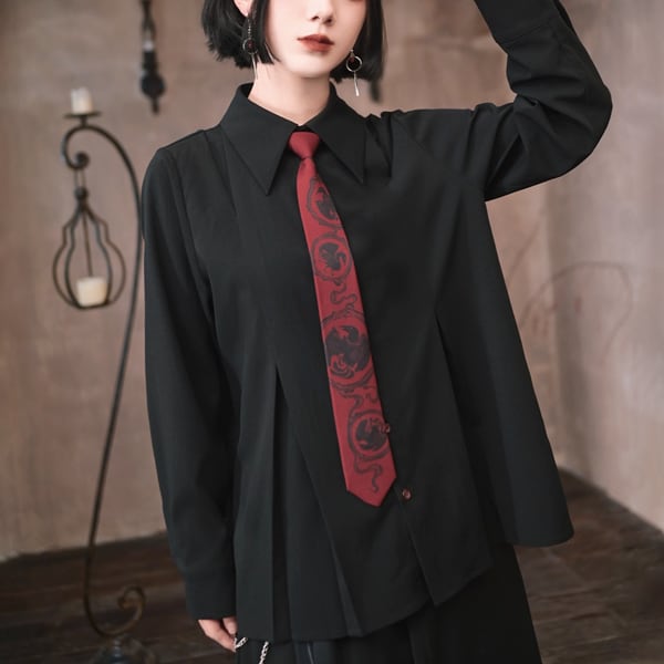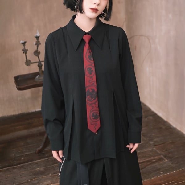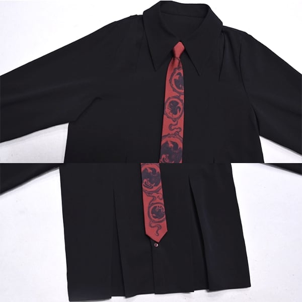 ネクタイ付き金鳥グラフィックプリーツロングスリーブシャツ(ruf_02461)