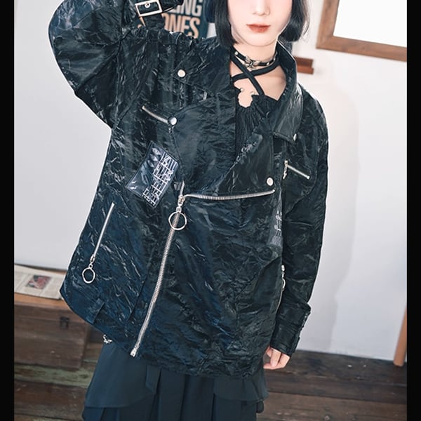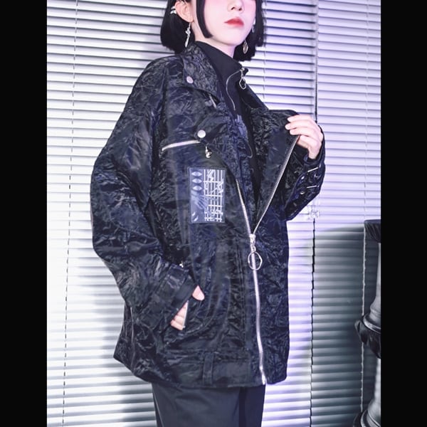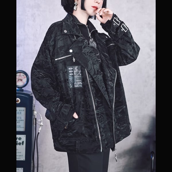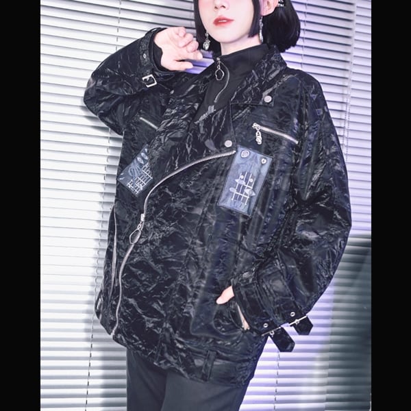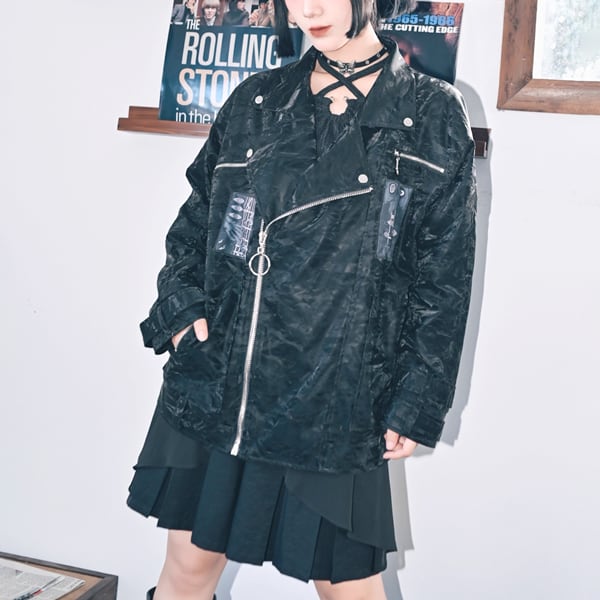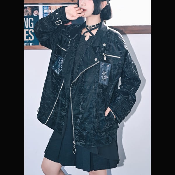 スリーブストラップパッチダブルPUジャケット(ruf_02463)