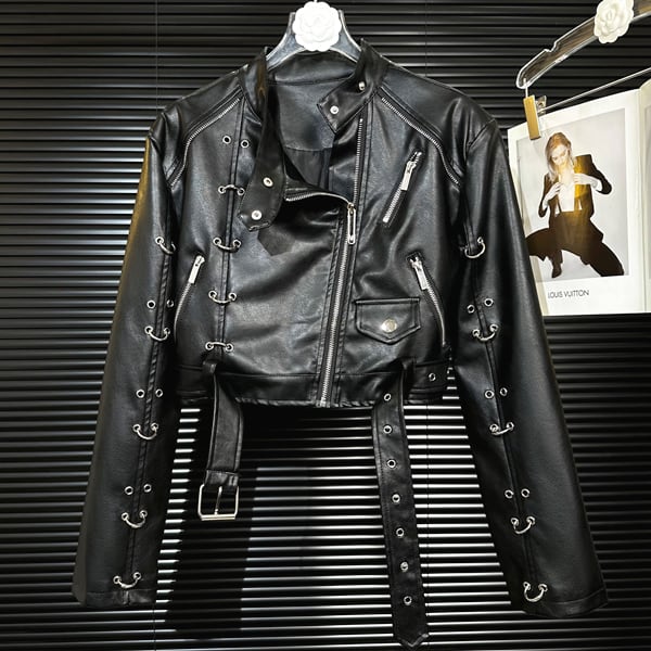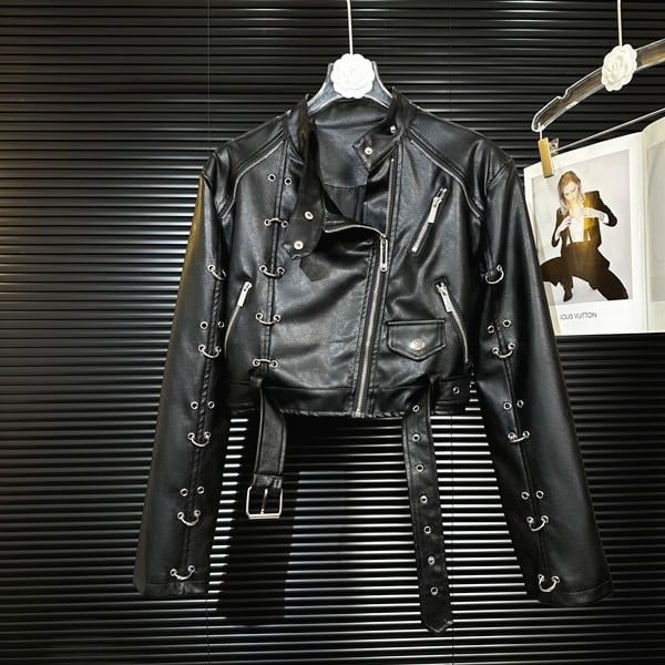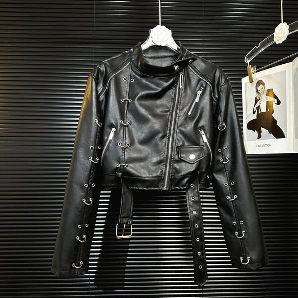 ジッパーリングスリーブダブルPUジャケット(ruf_02485)