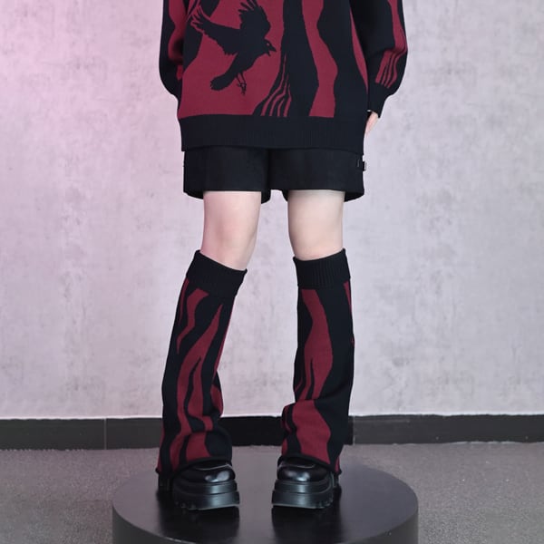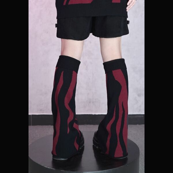 レッドブラックランダムストライプレッグウォーマー(ruf_02493)