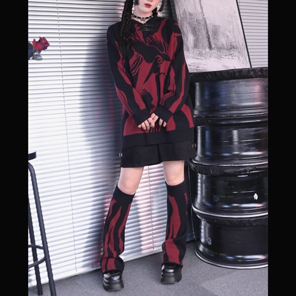 ▼ブラックレッドフーディニット(鴉グラフィックレッドブラックフーディダブルストラッププルオーバーニット(ruf_02492))は以下からご覧ください▼