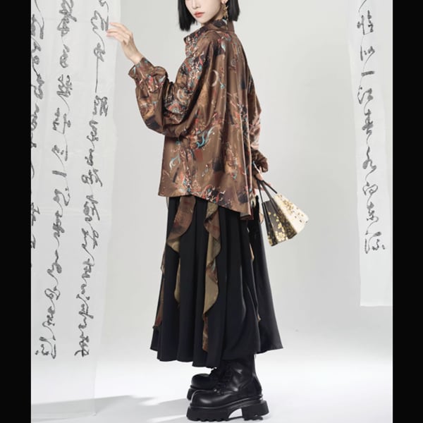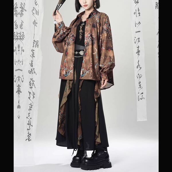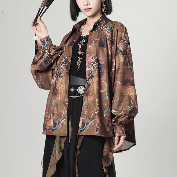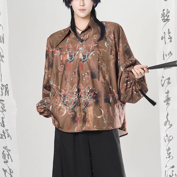 サイドポケットフルパターンブラウンシャツ(ruf_02506)