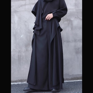 ドレープレイヤードデザインブラックワイドロングパンツ(ruf_02513)