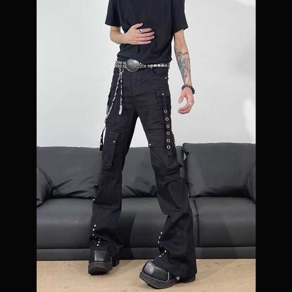 ハトメスタッズブラックストレッフレアパンツ(ruf_02516)
