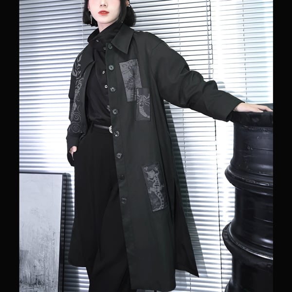 ランダムパッチ五毒防風ロングコート(ruf_02537)