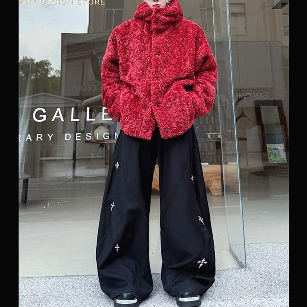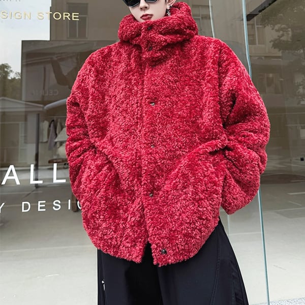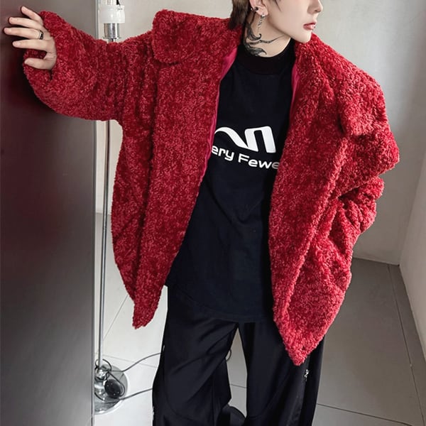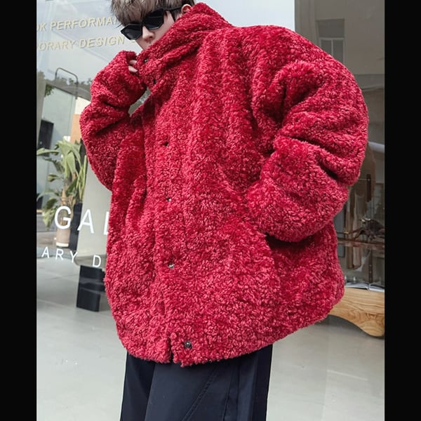 ボアテクスチャフーディボタンレッドジャケット(ruf_02552)