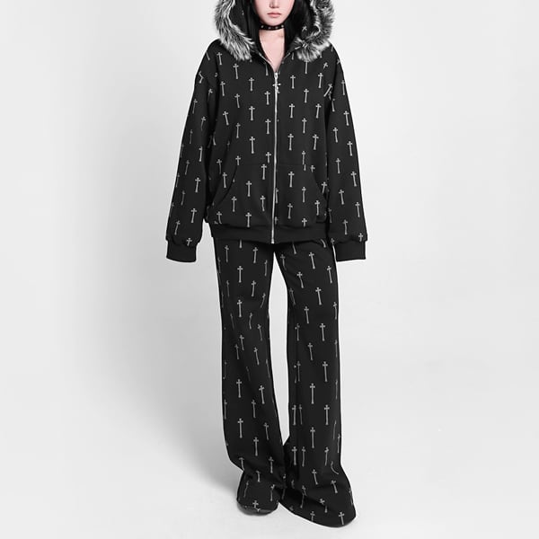 フルクロスパターンセミフレアスウェットパンツ(ruf_02567)