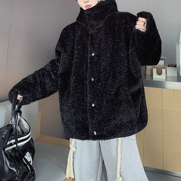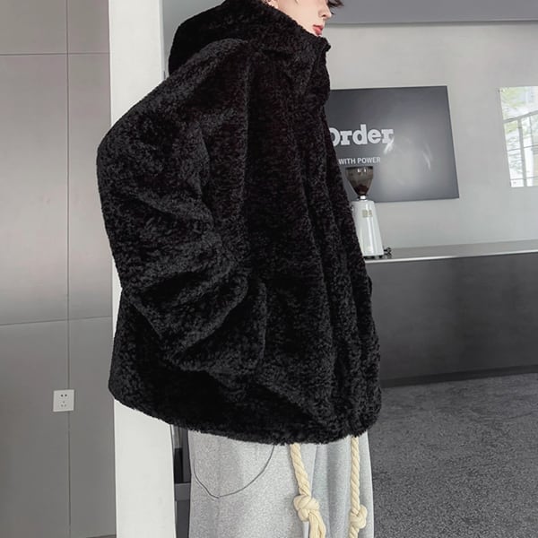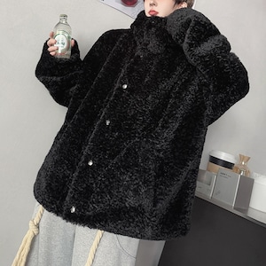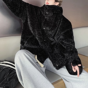 ボアテクスチャフーディボタンブラックジャケット(ruf_02574)