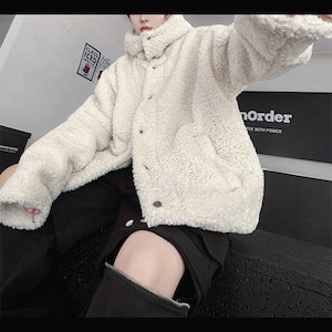ボアテクスチャフーディボタンホワイトジャケット(ruf_02575)