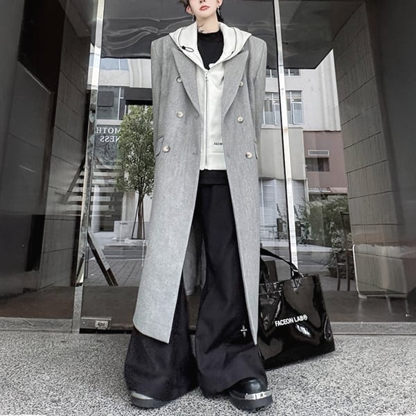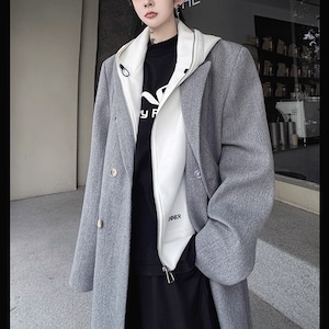 フェイクツーピースジップアップフーディダブルロンググレーコート(ruf_02576)