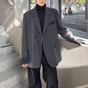 アシメボタンレイヤードカフスグレースーツジャケット(ruf_02577)