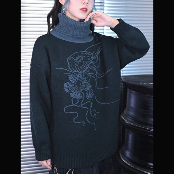 幻海海月ハイネックバイカラーニット(ruf_02580)