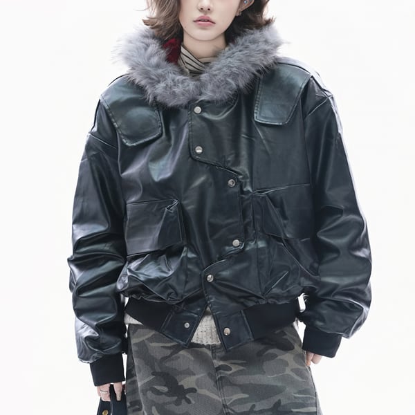 レッドライニングファーエッジフーディサイドポケットPUジャケット(ruf_02591)