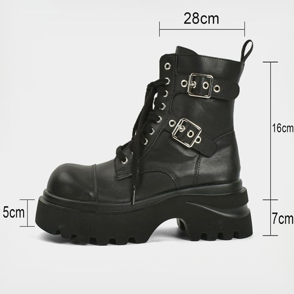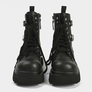 ◆【Ladies】サイドダブルバックルジッパーレースアップブーツ(ruf_02594)