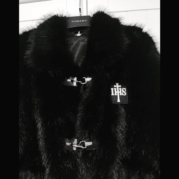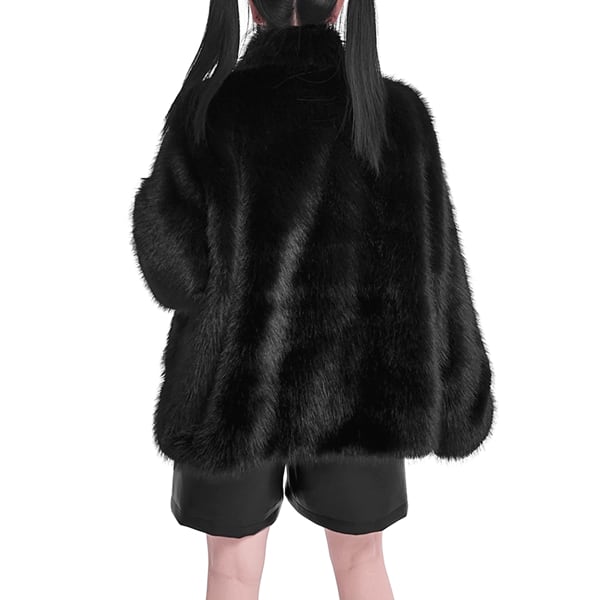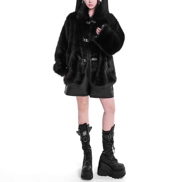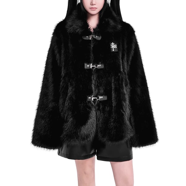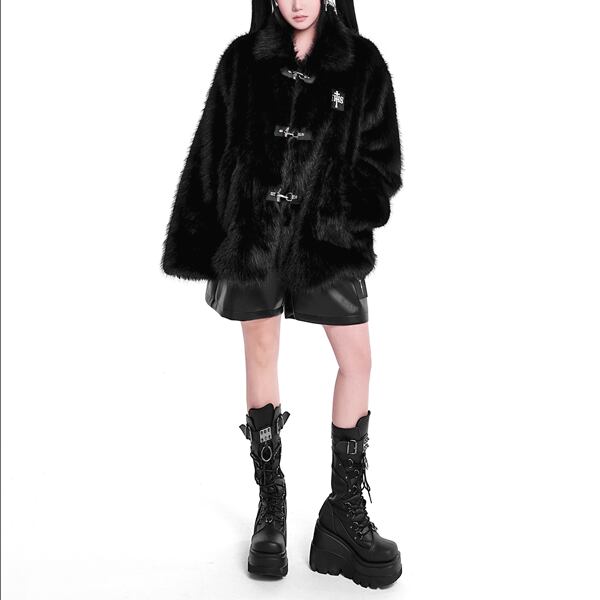 ファイヤーマンバックルフェイクファーブラックジャケット(ruf_02606)
