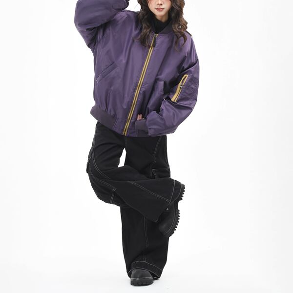 キルティングジップアップパープルブルゾン(ruf_02614)