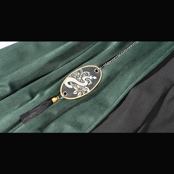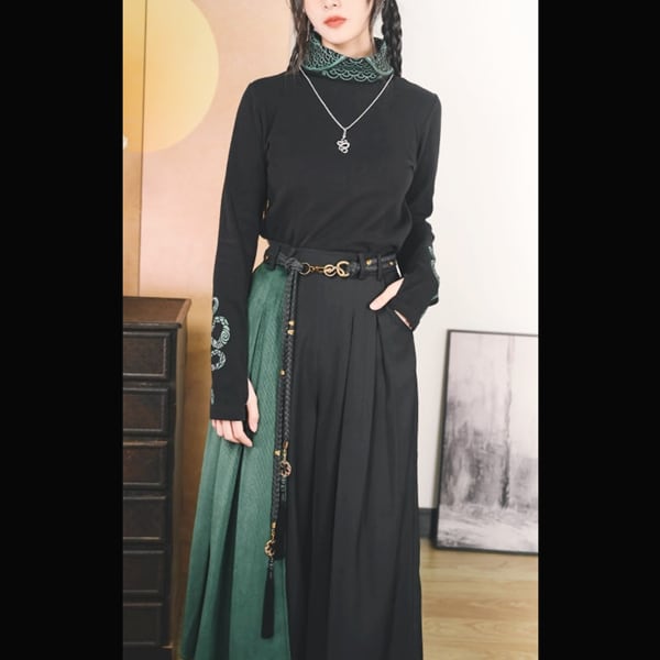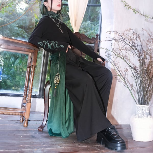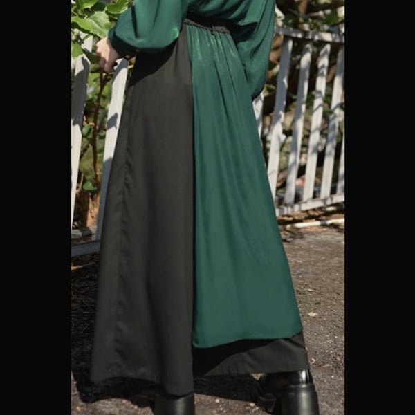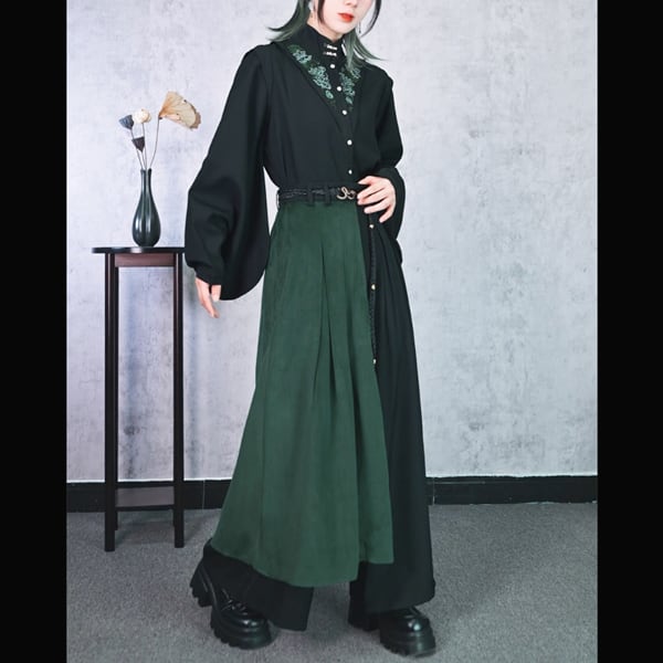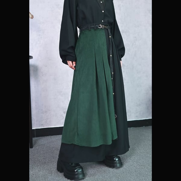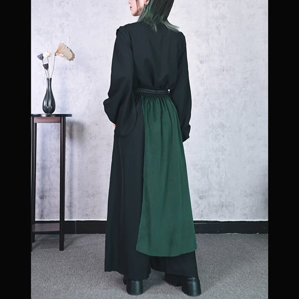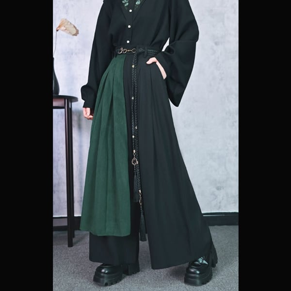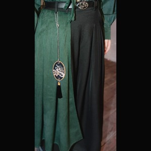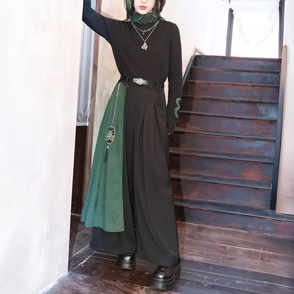 ワンサイドレイヤードグリーンブラックチェーンアクセワイドパンツ(ruf_02629)