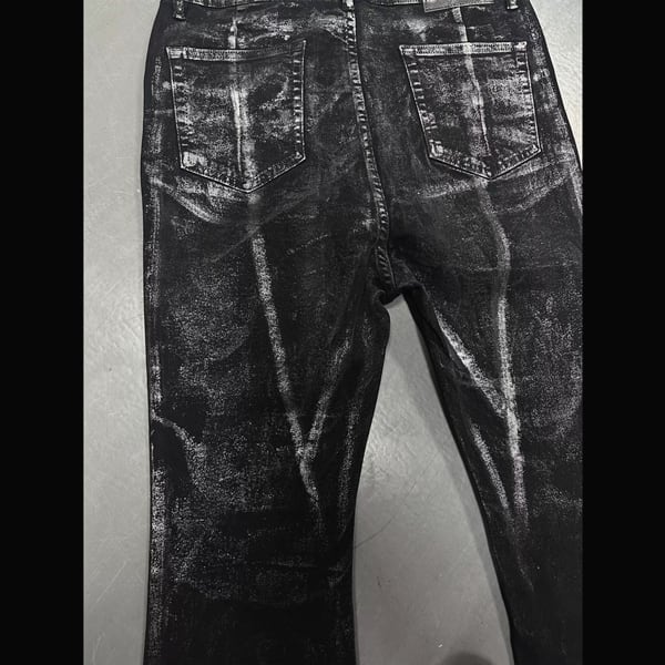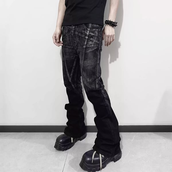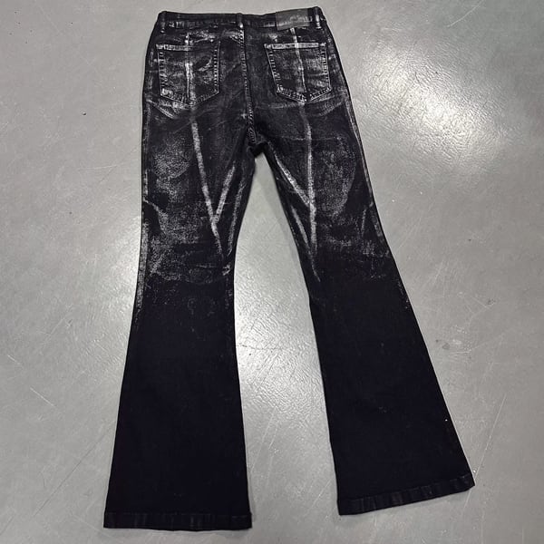 グランジホワイトウォッシュドブラック加工マイクロストレッチフレアデニム(ruf_02647)