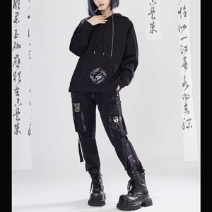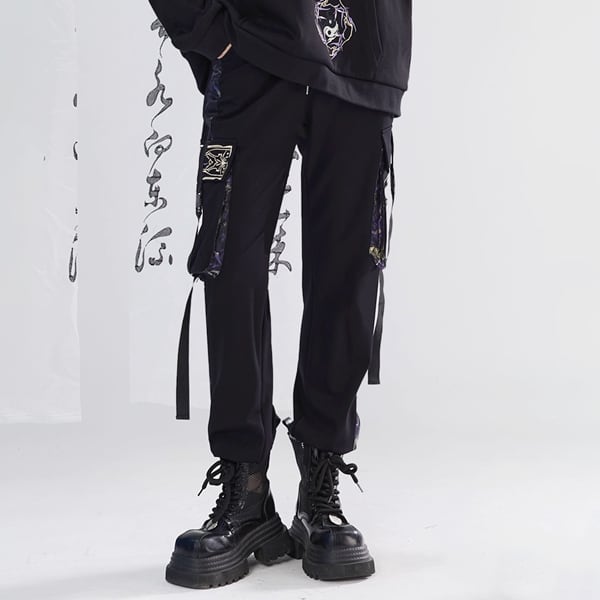 刺繍サイドラインストラップポケットユニセックスアーミーパンツ(ruf_02653)