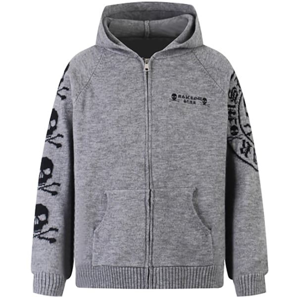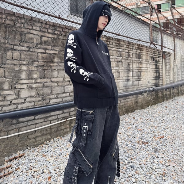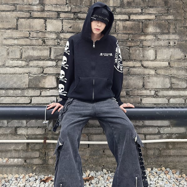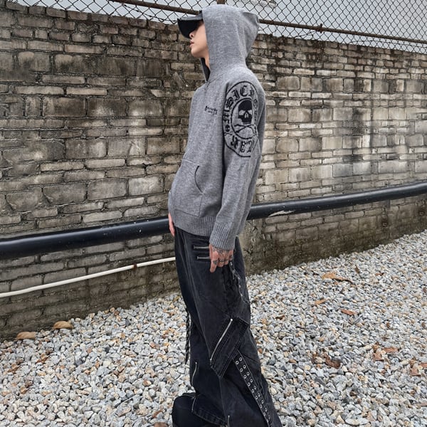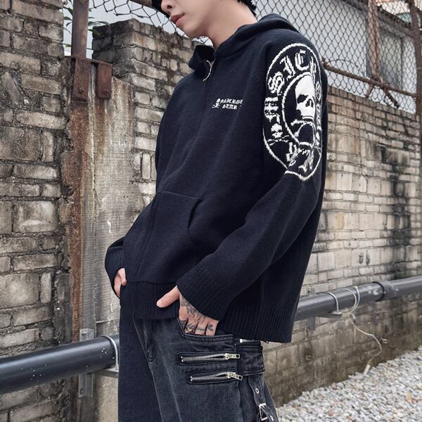 スカルグラフィックスリーブニットパーカー(2カラーあり)(ruf_02662)