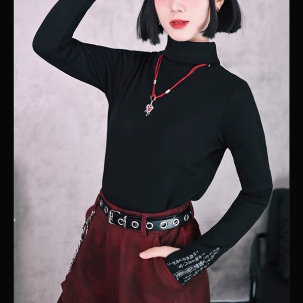 ハイネックスリーブロゴホールロングスリーブカットソー(ruf_02673)