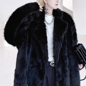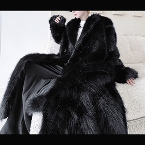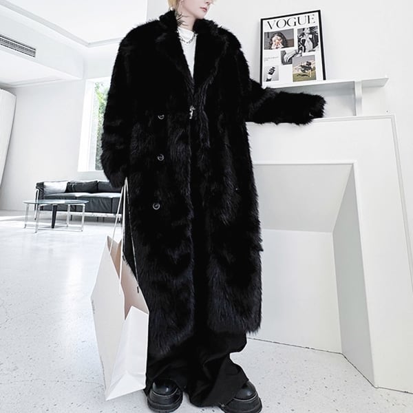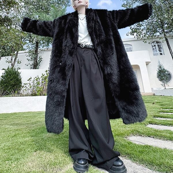 フェイクファーブラックダブルロングコート(ruf_02696)