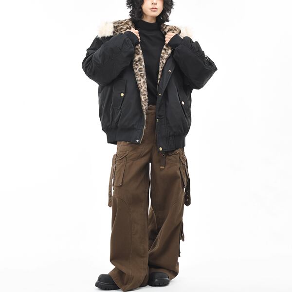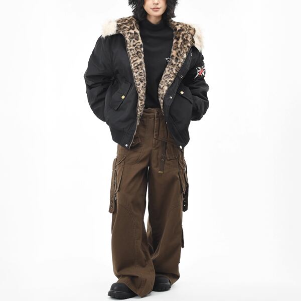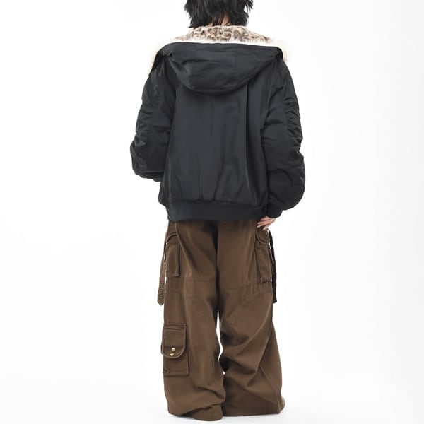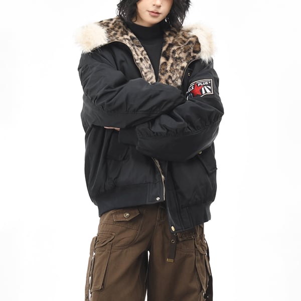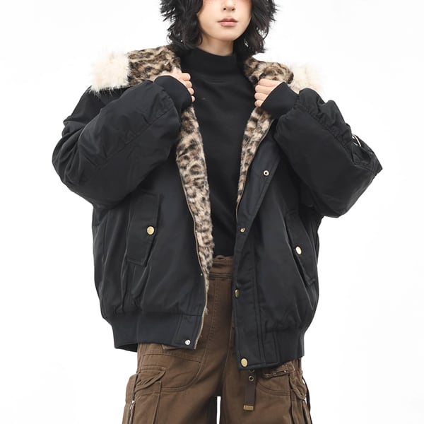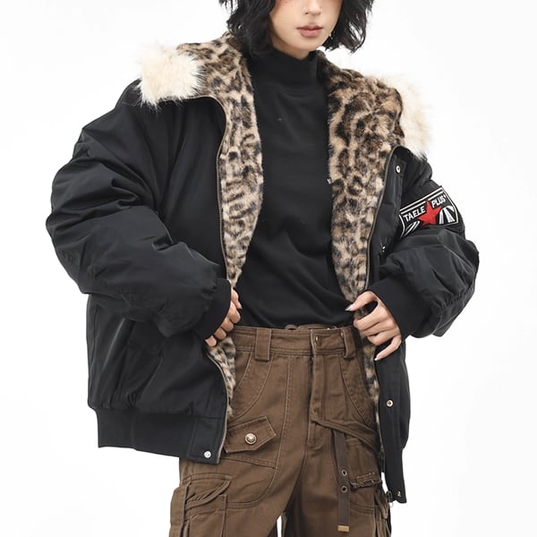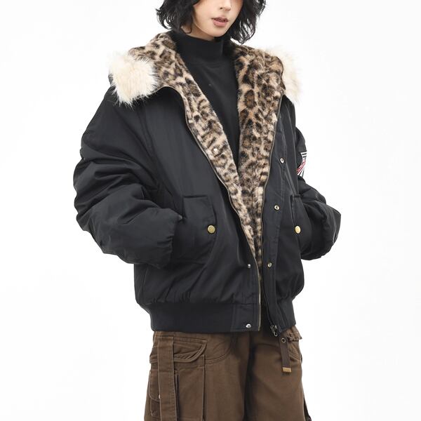 ファーエッジフーディレオパルド切り替えキルティングジップアップジャケット(ruf_02699)