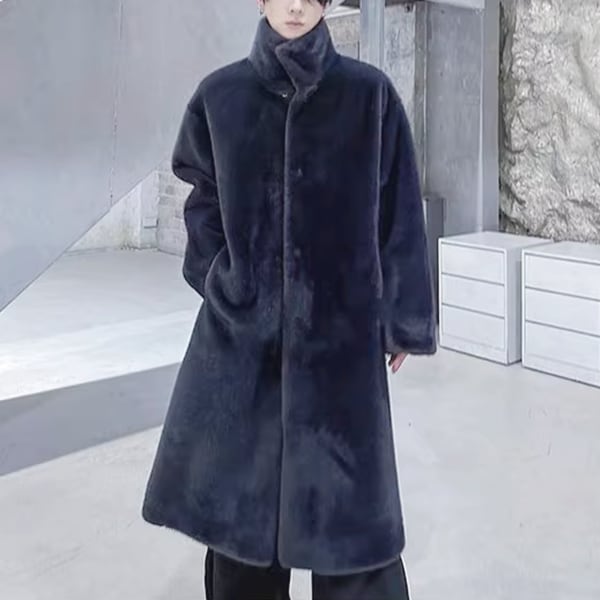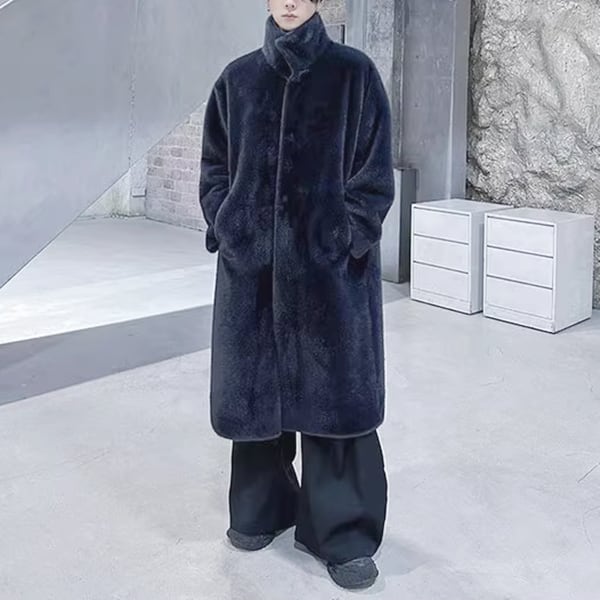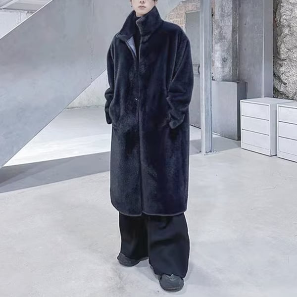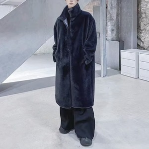 フェイクファーハイネックブラックコート(ruf_02703)