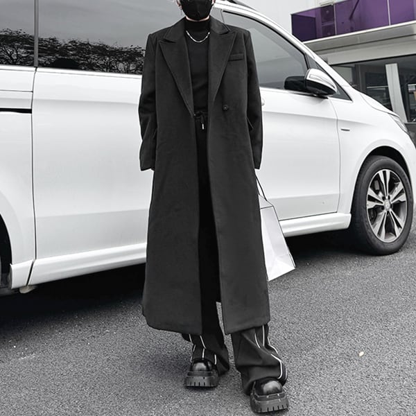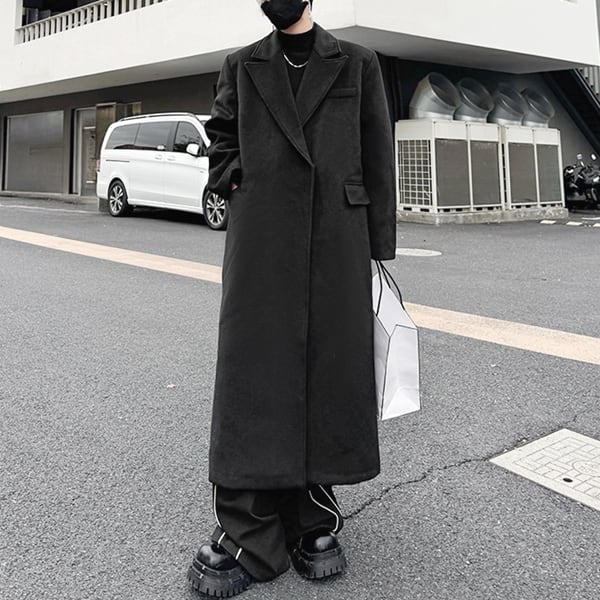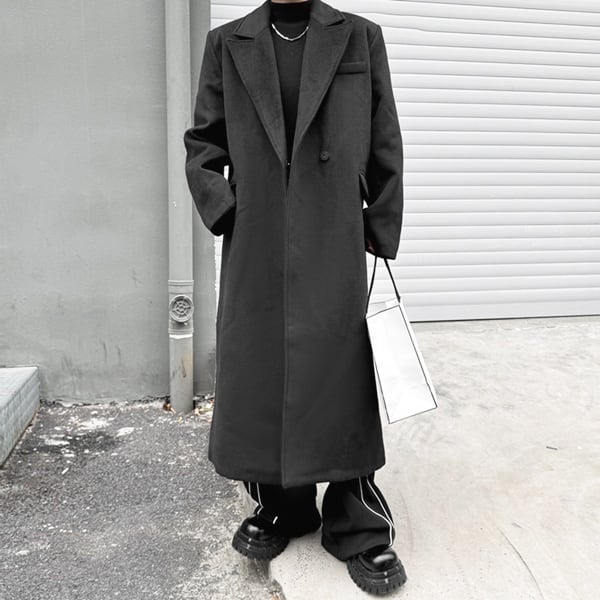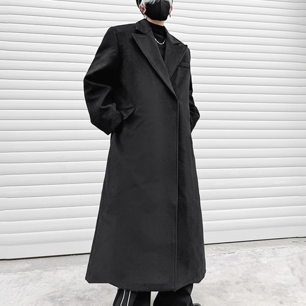 チェスターカラーブラックロング中綿入りコート(ruf_02715)