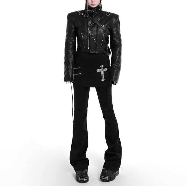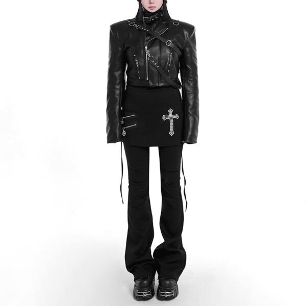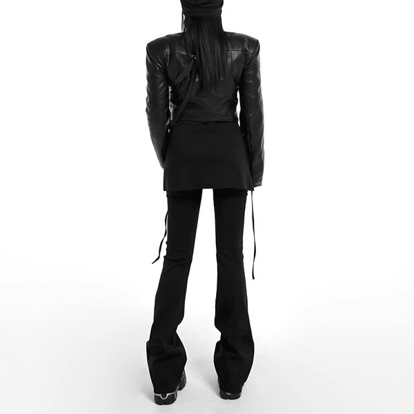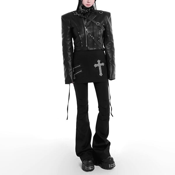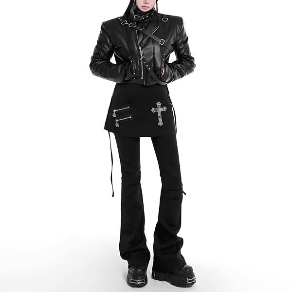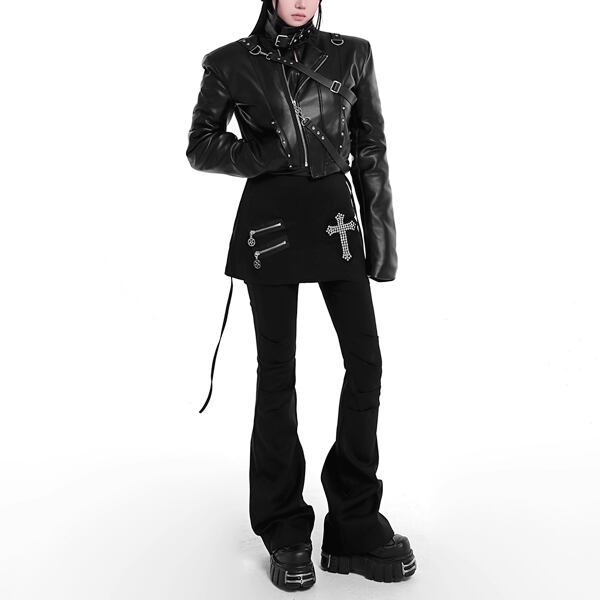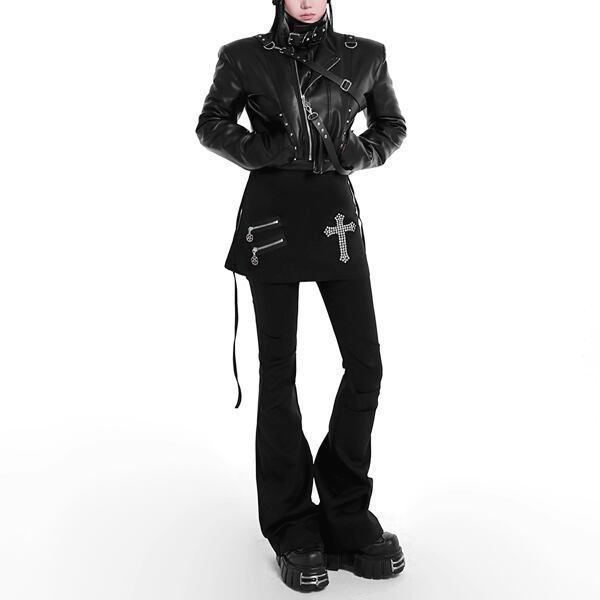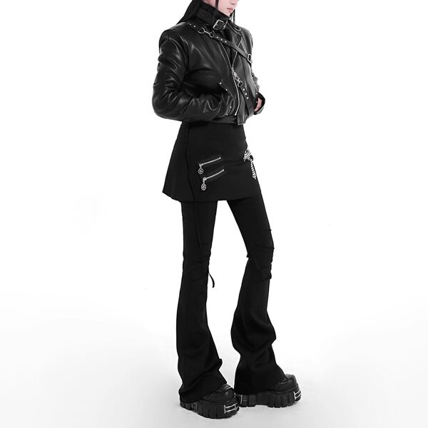 ストレッチ フェイクレイヤード ジップダークフレアパンツ(ruf_02720)