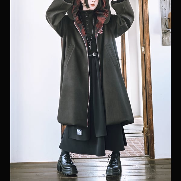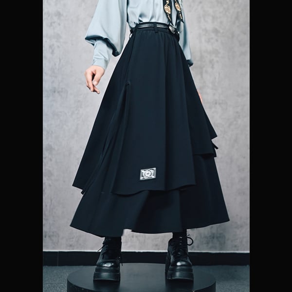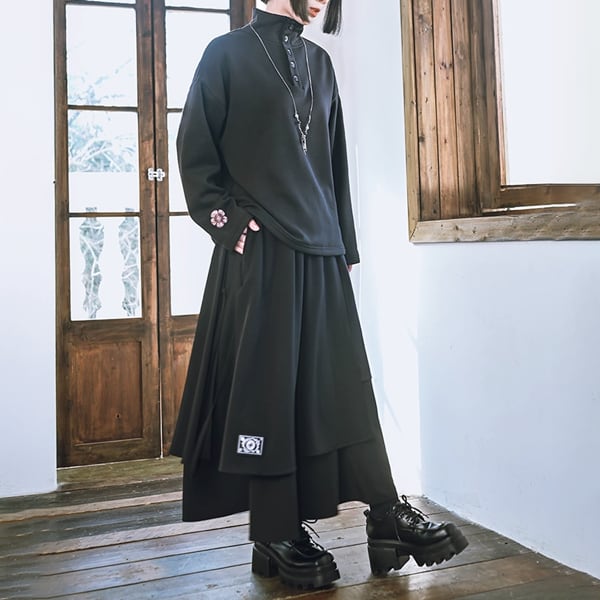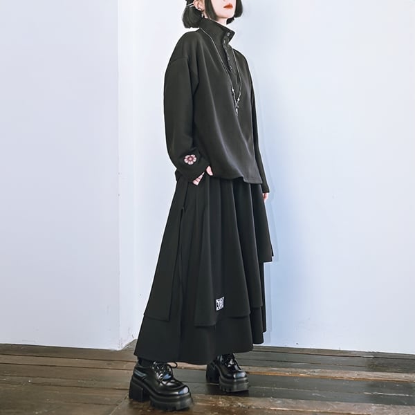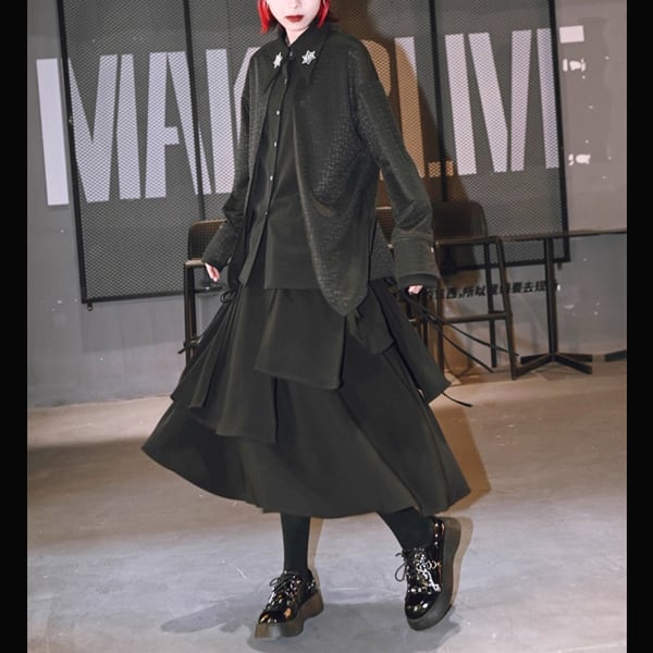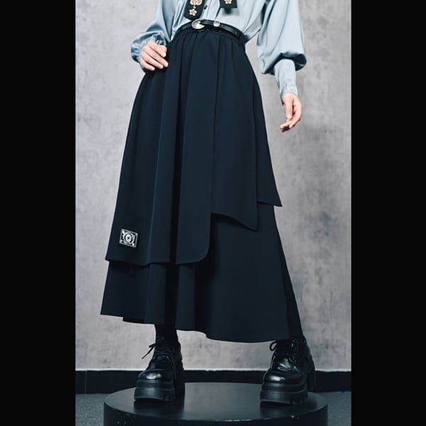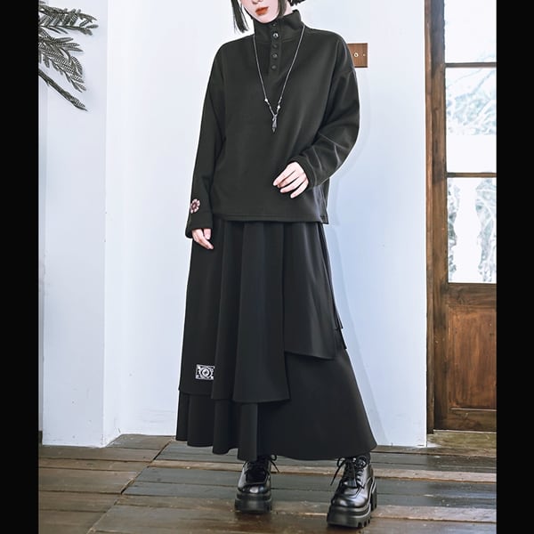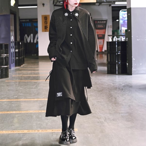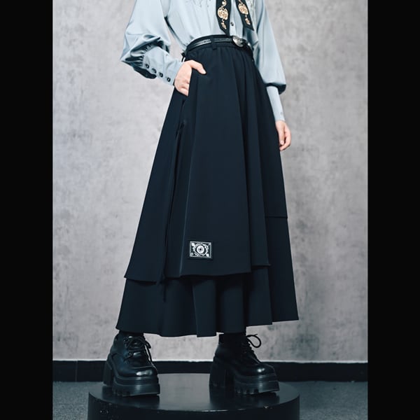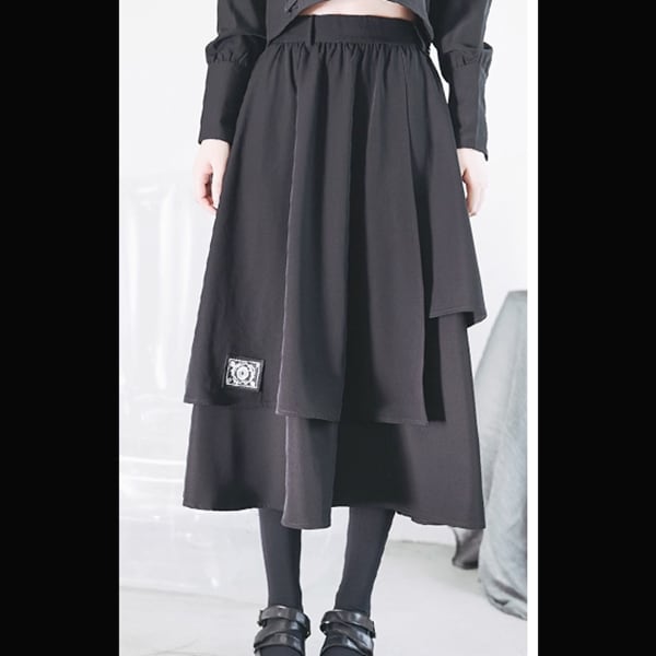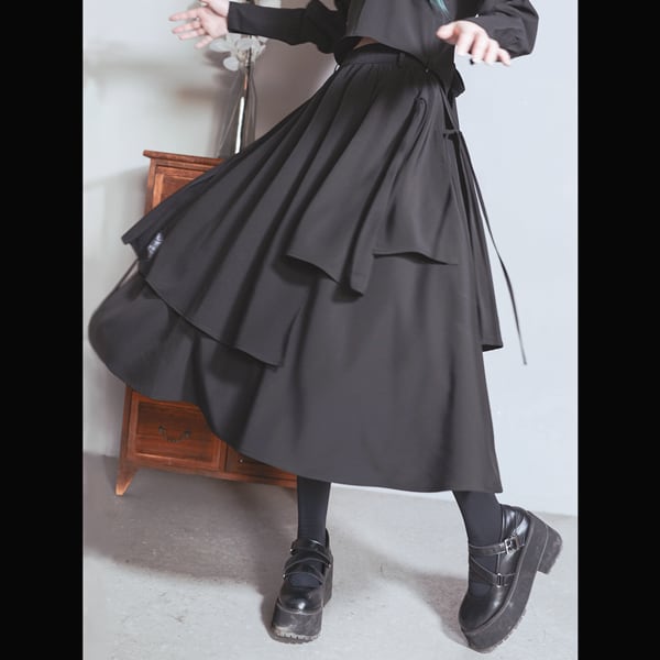 眼球薔薇アシンメトリーレイヤードブラックスカート(ruf_02736)