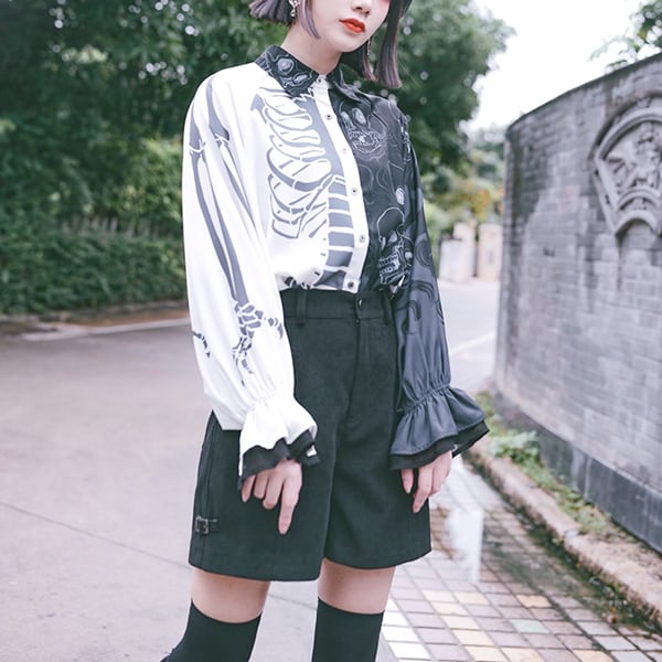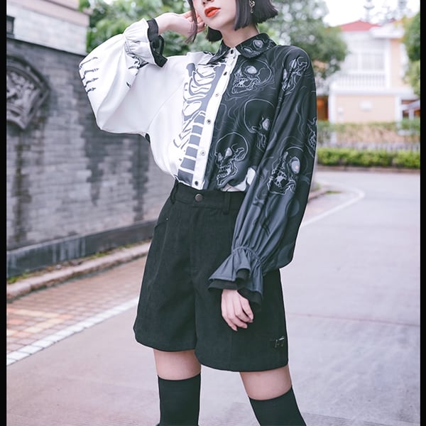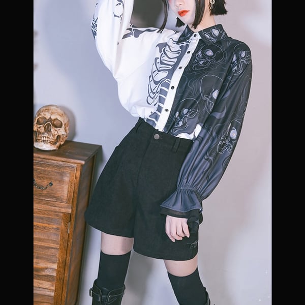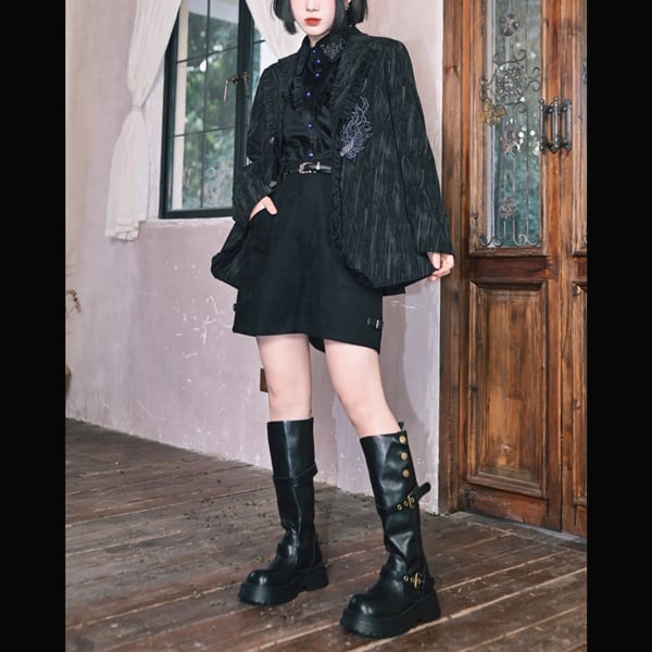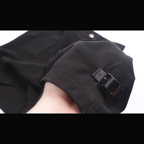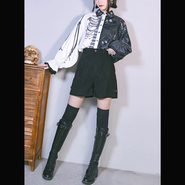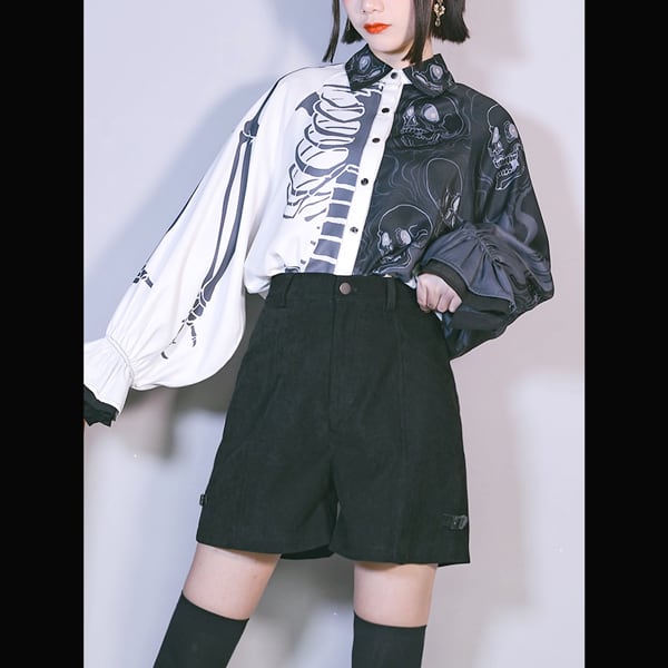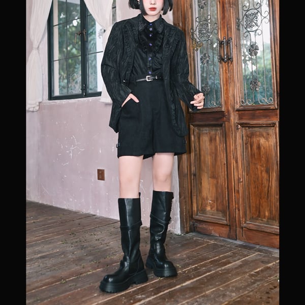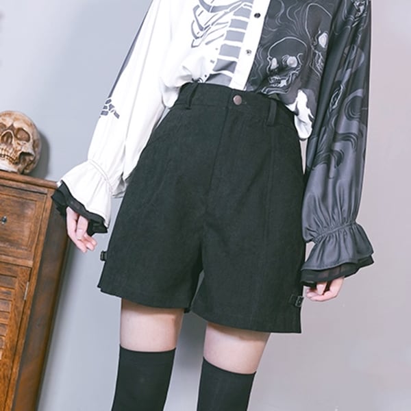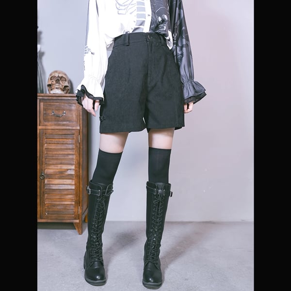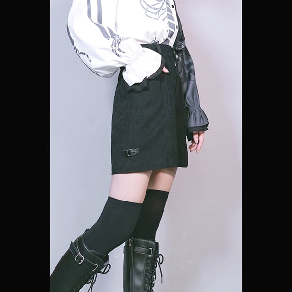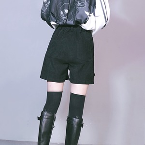 暗夜ハイウエストPUレザーバックルショートパンツ(ruf_02732)