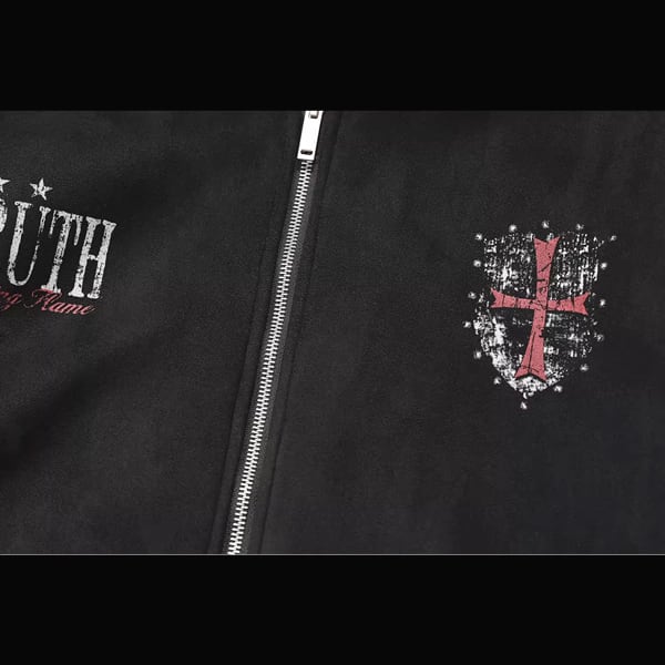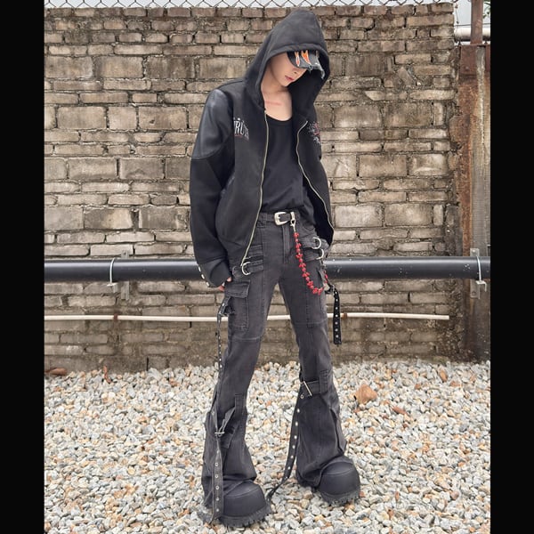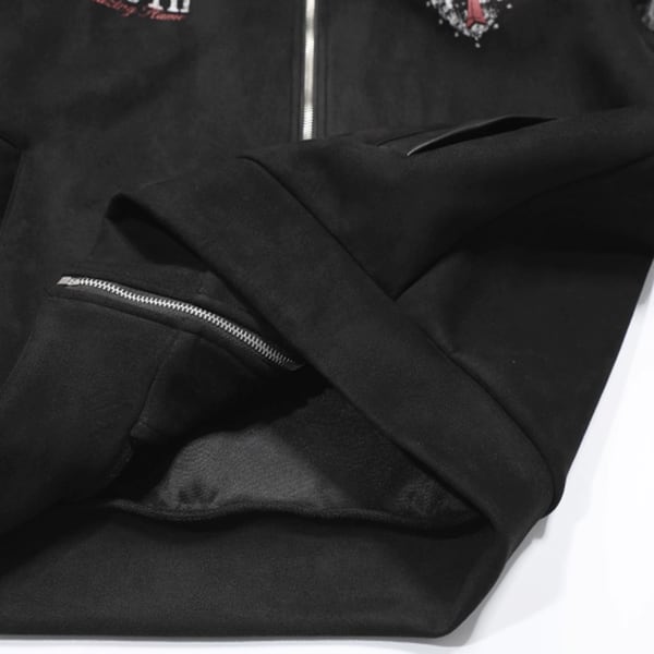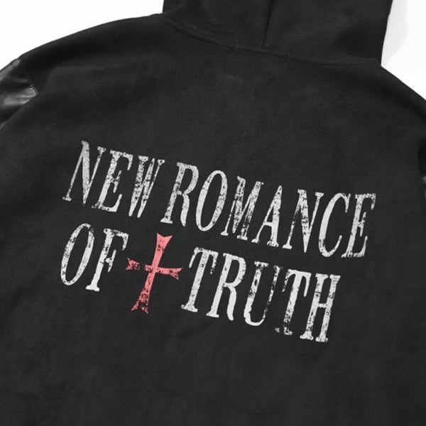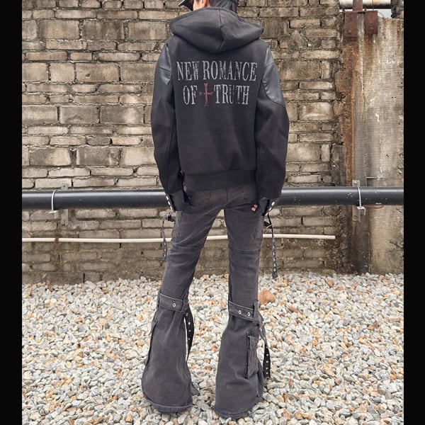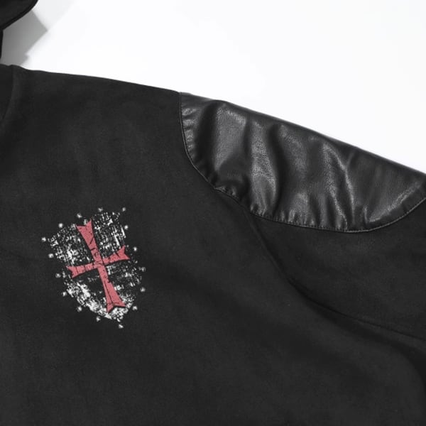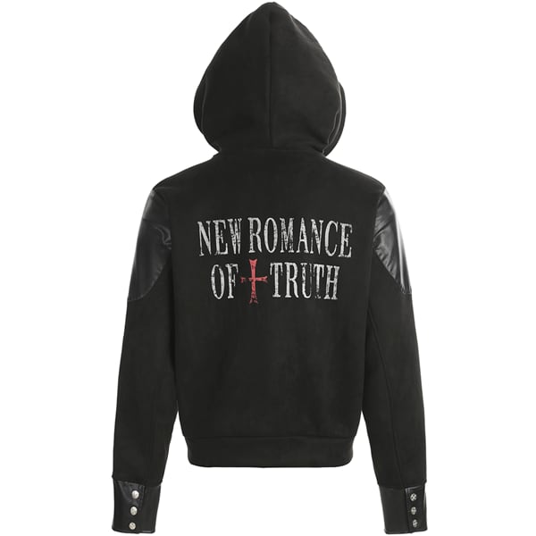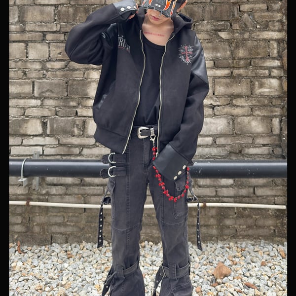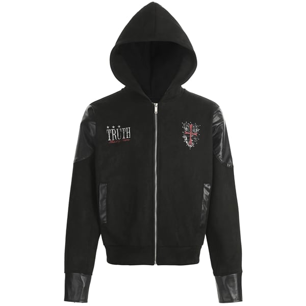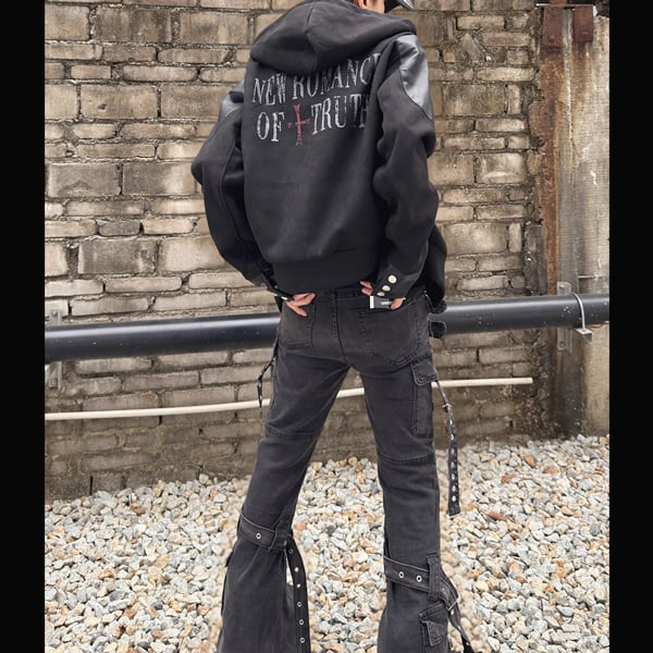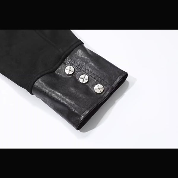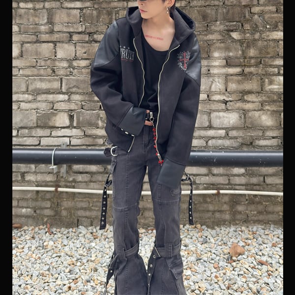PU切り替えフーデッドブラックマットジャケット(ruf_02742)