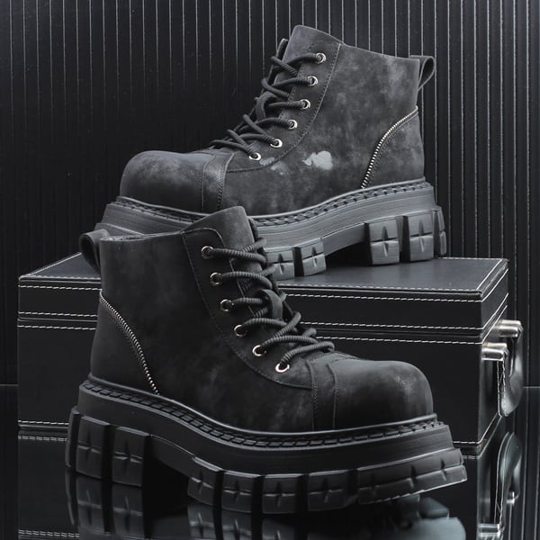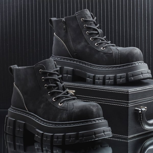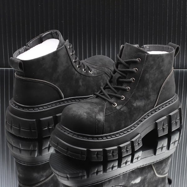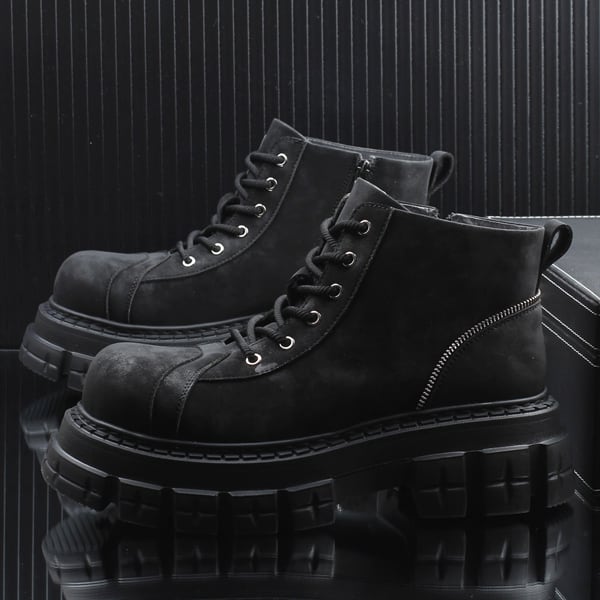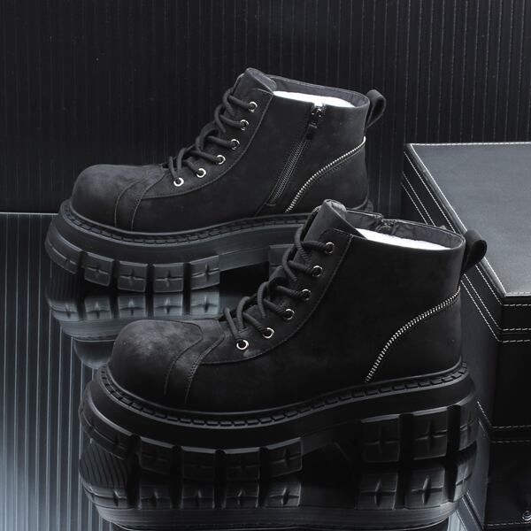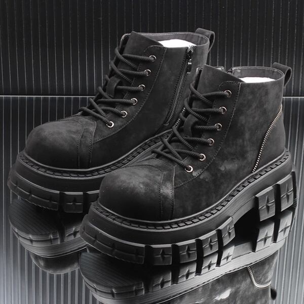 メタルジップエッジレースアップブラックタンクブーツ(ruf_02744)
