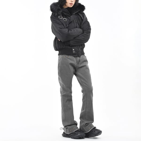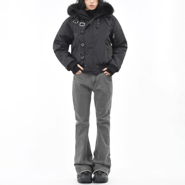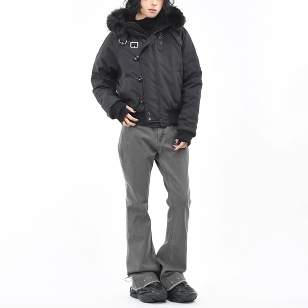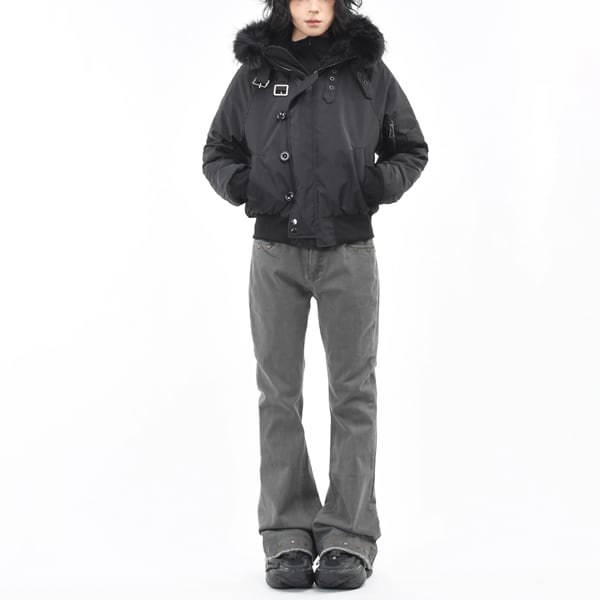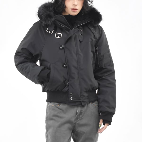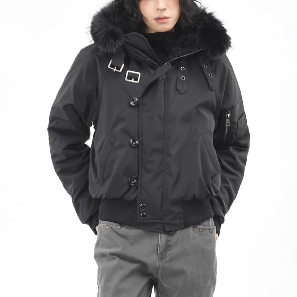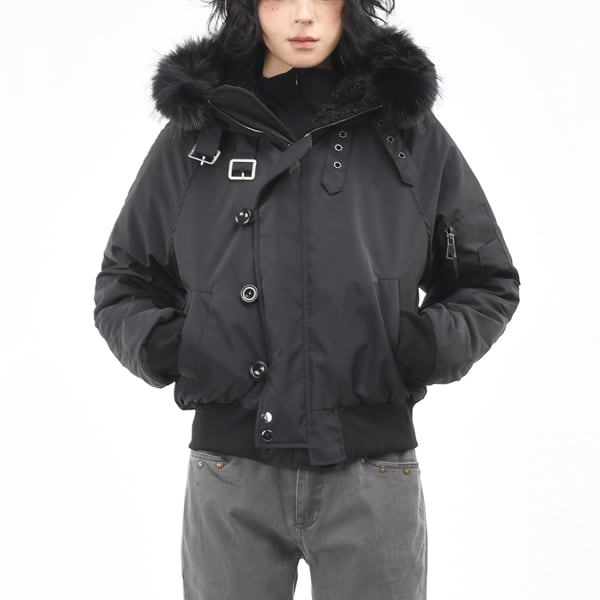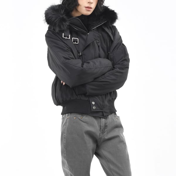 ファーカラーフーデッドショートジャケット(ruf_02748)