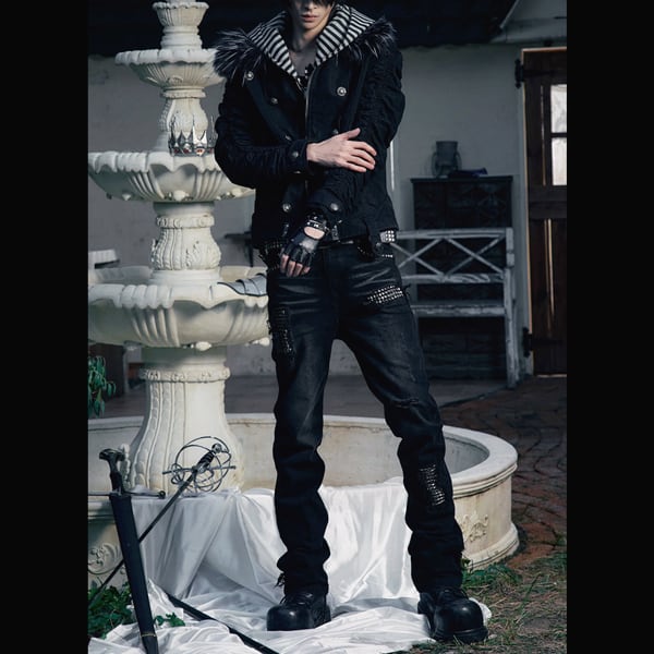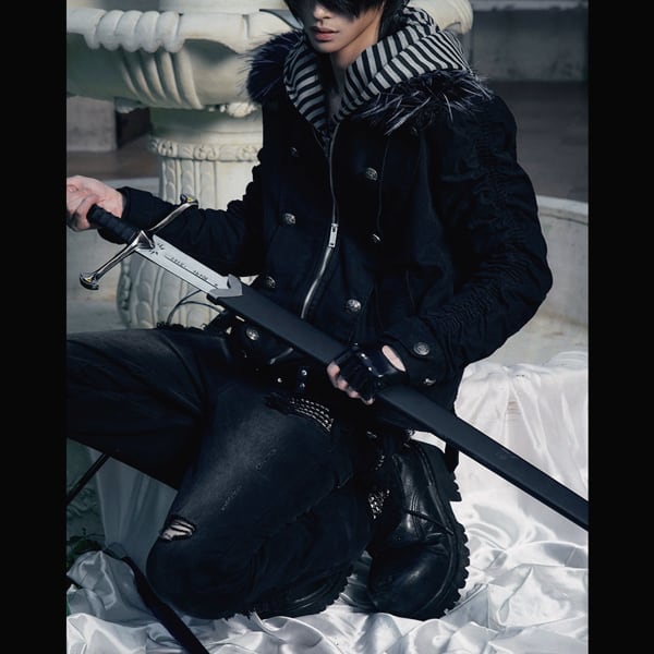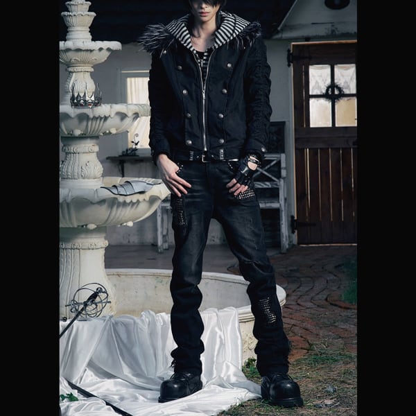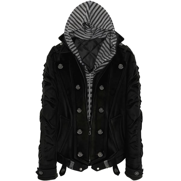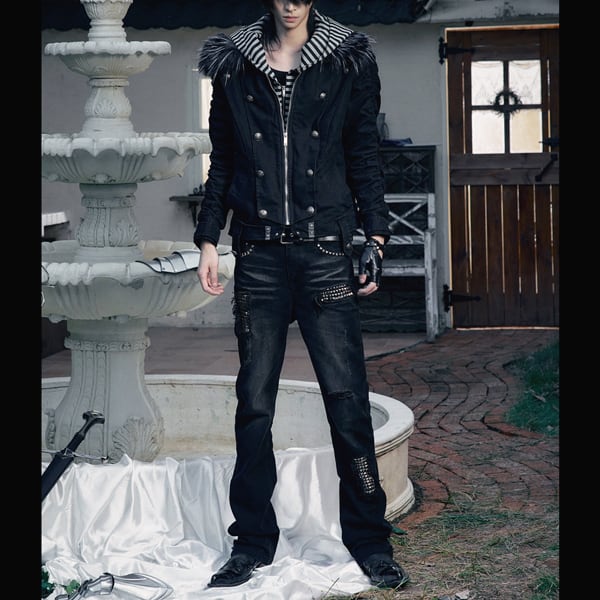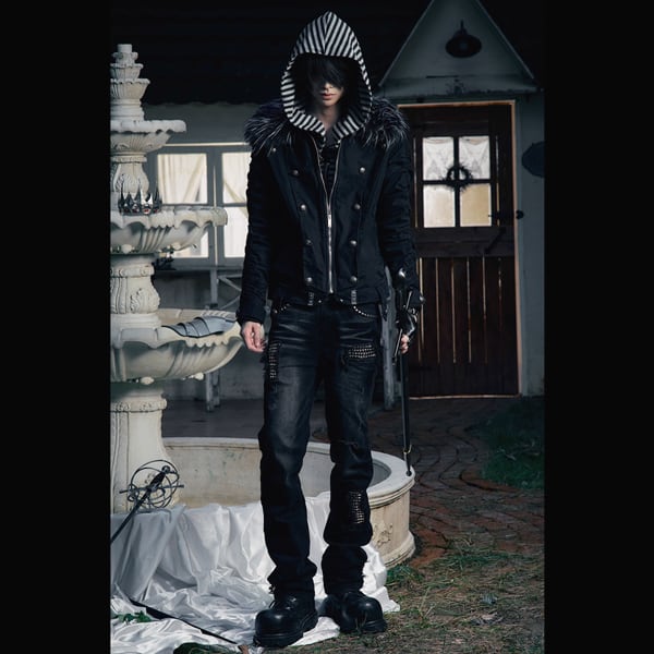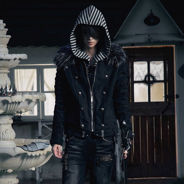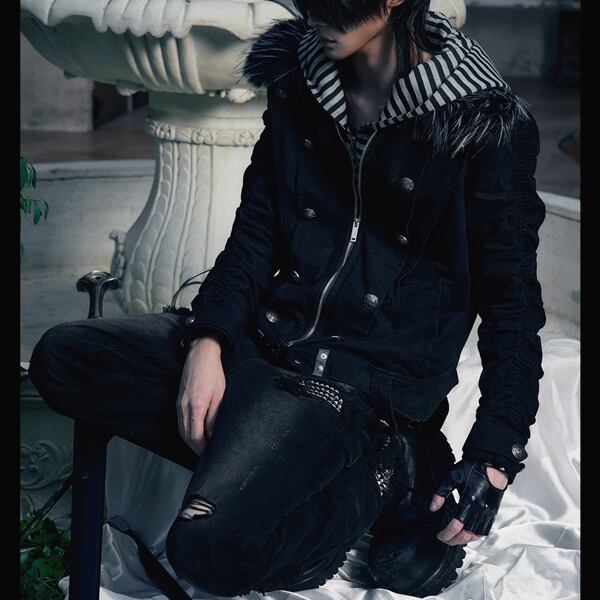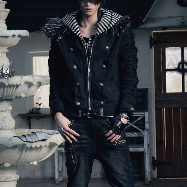 ファーカラー2WAYダブルブレスト中綿ブラックジャケット(ruf_02762)