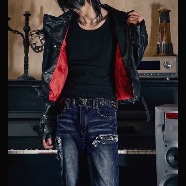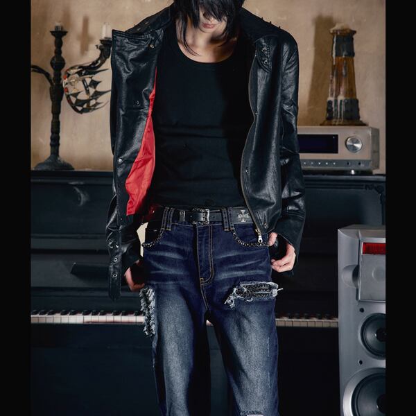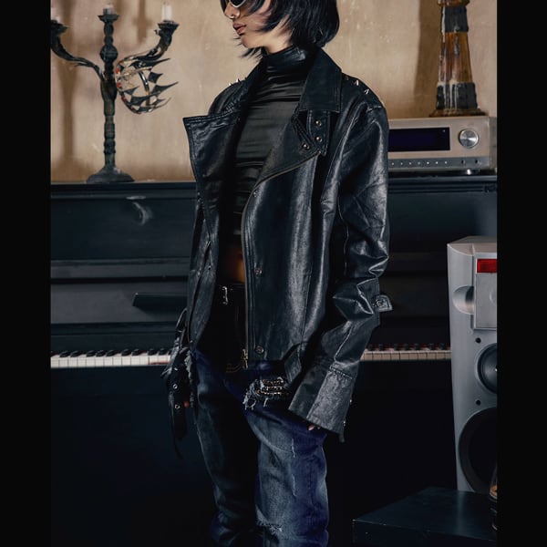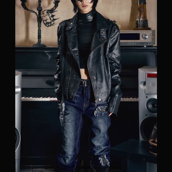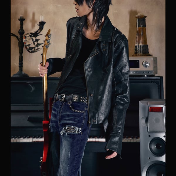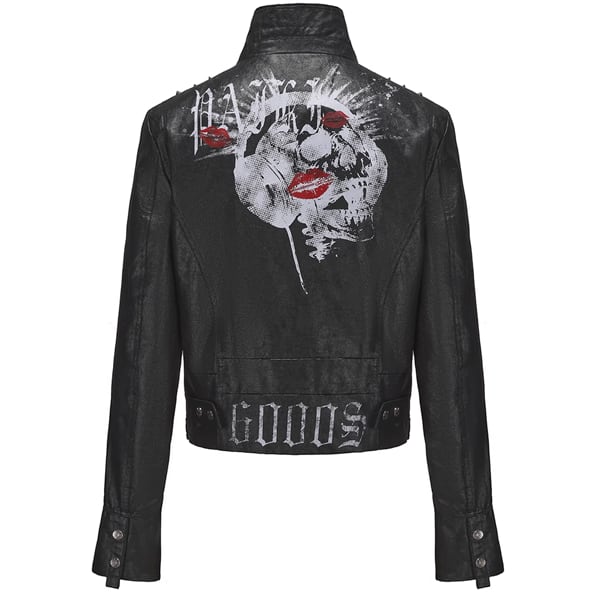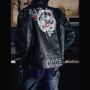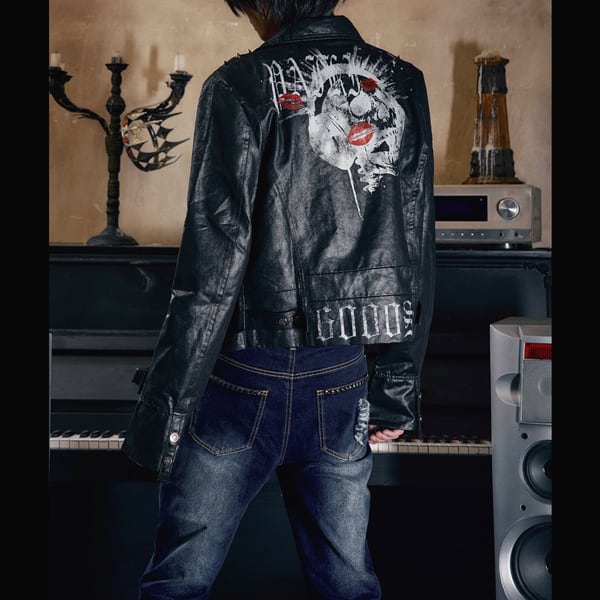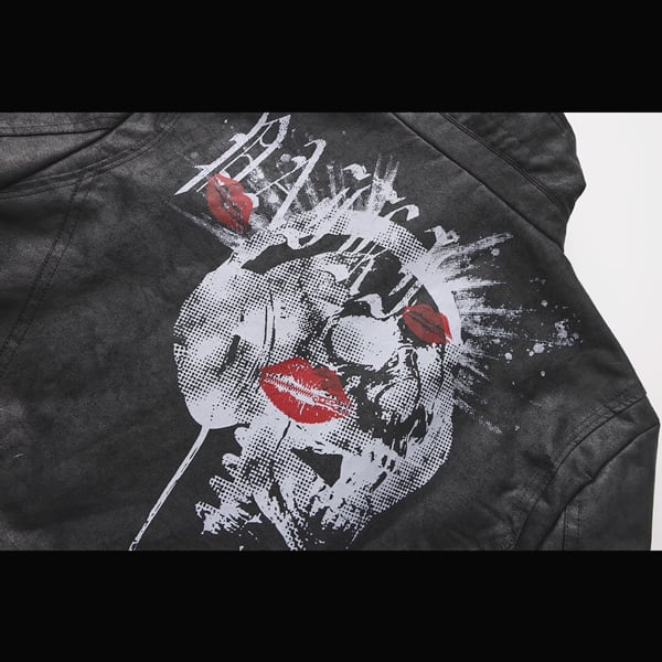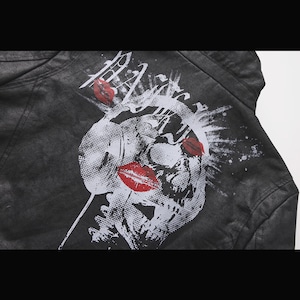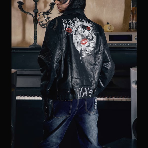 キスマークスカルウォッシュPUレザーライダースジャケット(ruf_02767)