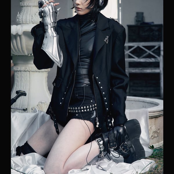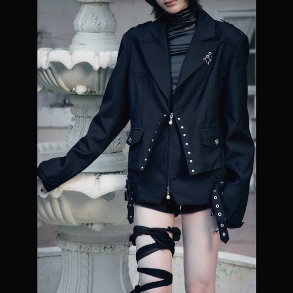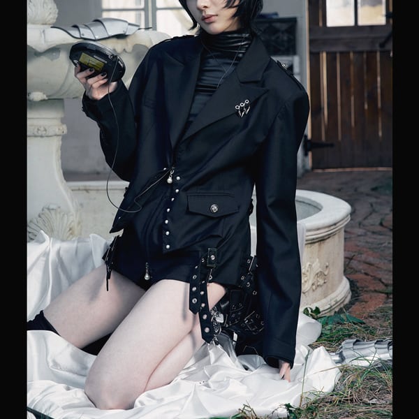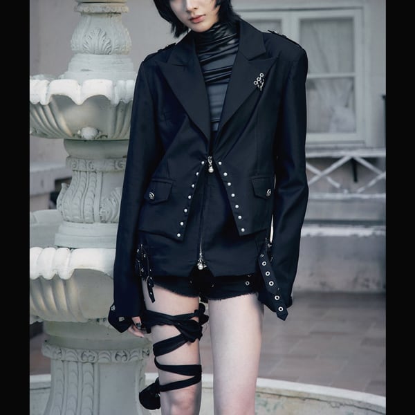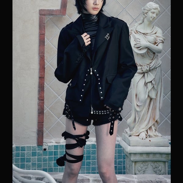 ベルトデザイン パールジップテーラードジャケット(ruf_02769)